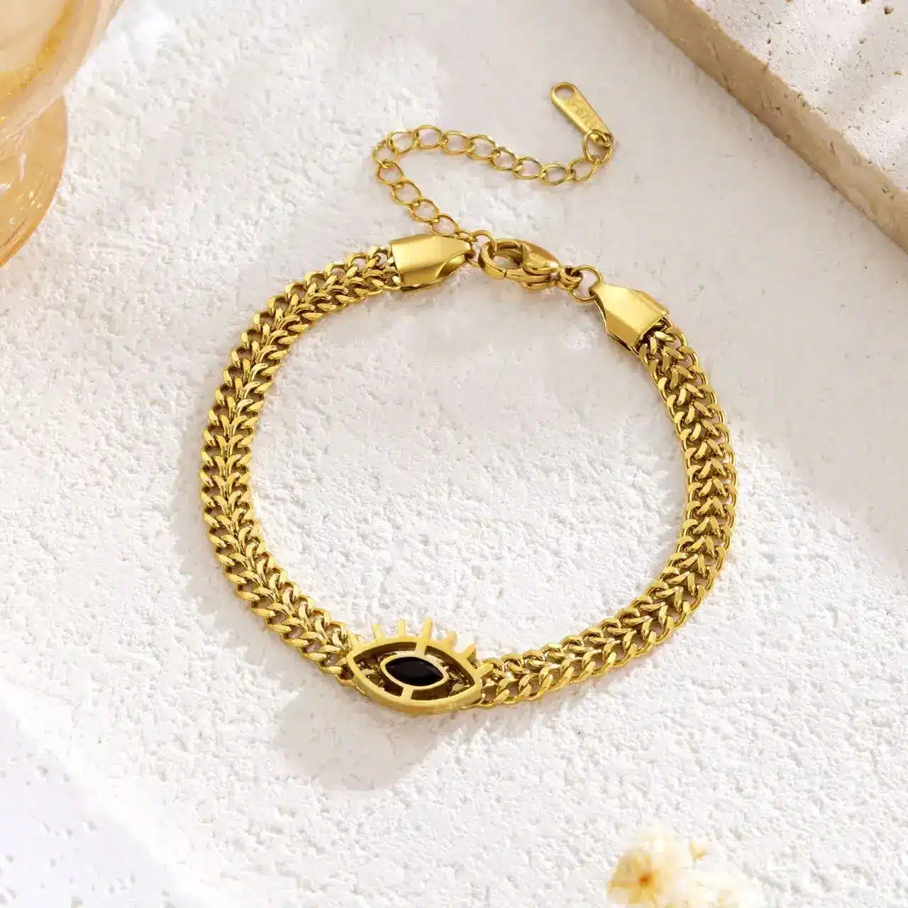Fashion All-match Design Women’s Woven Hollow Chain Necklace Women’s 18K Devil’s Eye Necklace Bracelet Set
