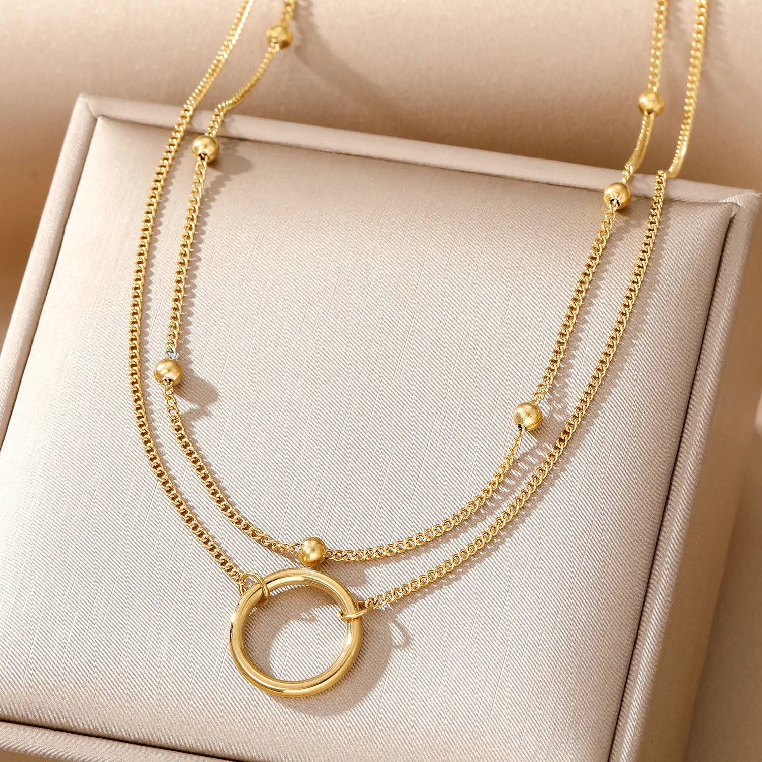 Key attributes Jewelry Main Material:Stainless Steel Style:TRENDY Plating:gold Necklaces Type:Pendant Necklaces chain type:Link Chain Shapepattern:bead Gender:Unisex, Men’s, Children’s, Women’s Jewelry