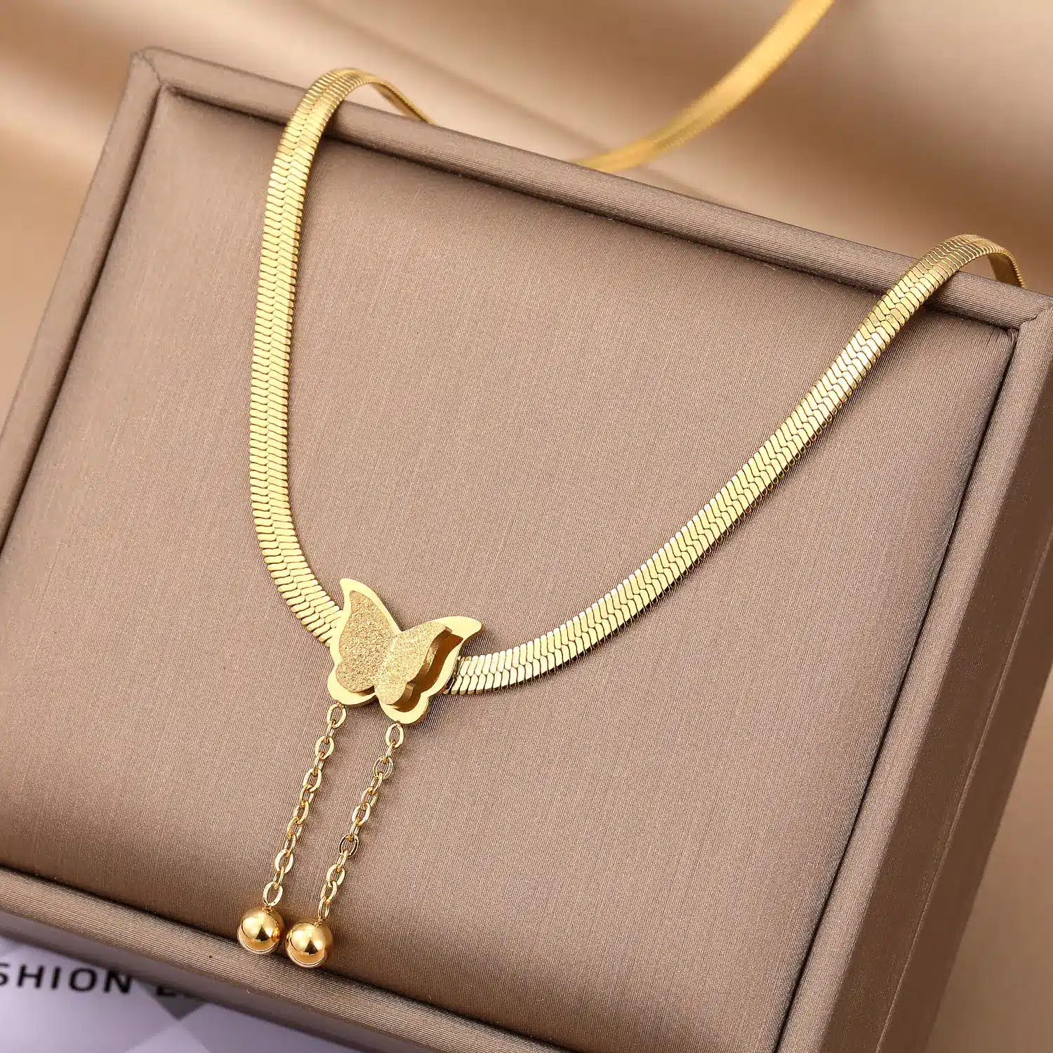 Be the first to review “Fashion Chain 18k Gold Plated Butterfly Love Heart Pendant Jewelry Designs 316l Stainless Steel Necklace Wholesale” Cancel reply