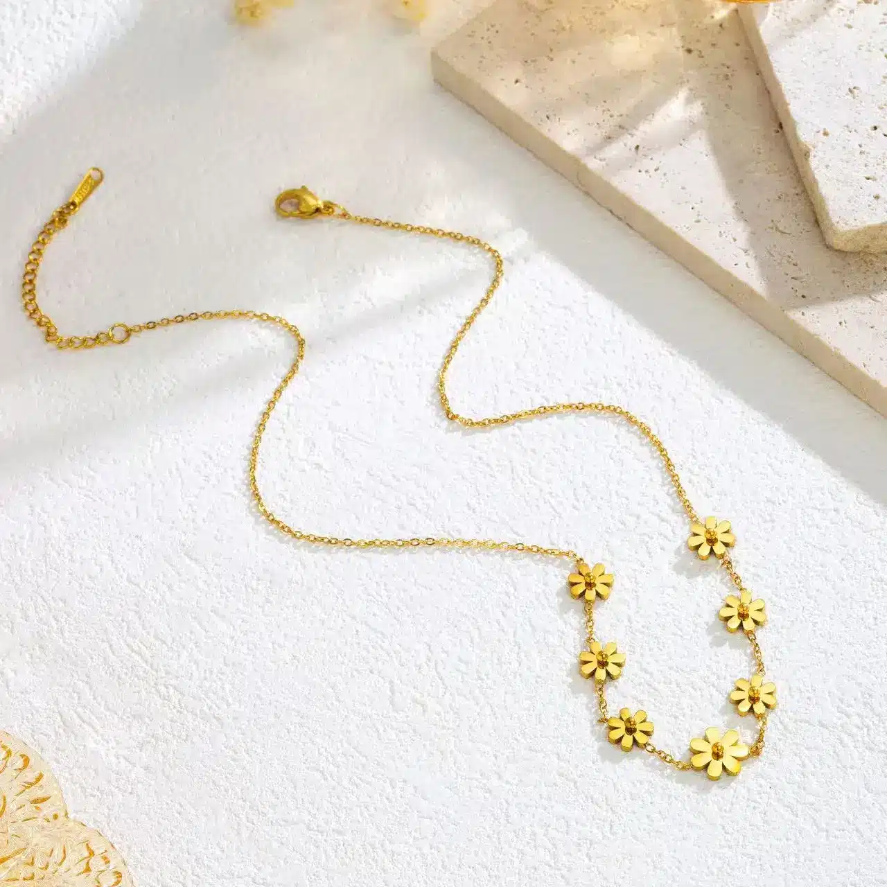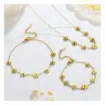 Be the first to review “Fashion Exquisite Sunflower Design Necklace Bracelet Anklet Set 18K Gold Titanium Steel Small Daisy Necklace Bracelet Wholesale” Cancel reply