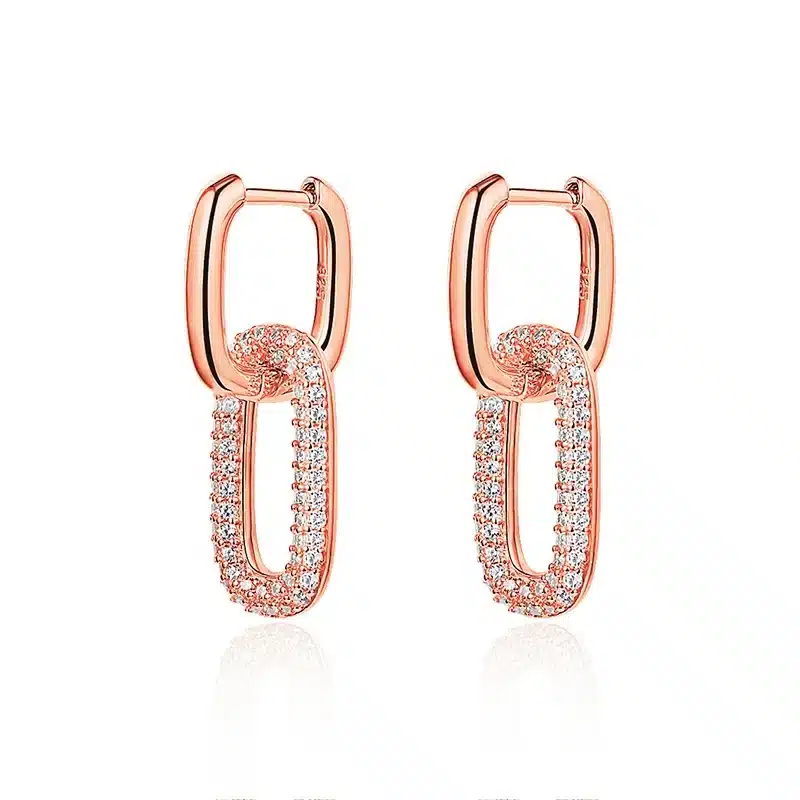 Fashion Jewelry 925 Sterling Silver Gold Plated Luxury Jewelry Paperclip Chain Zircon Stud Drop Earrings for Women Party