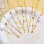 Be the first to review “Fashion Stainless Steel Tassel Necklace 18K Gold Women’s Collarbone Necklace Round Small square Drop Pear Pendant Necklace” Cancel reply