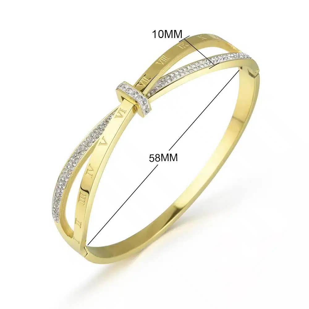 Fashion Waterproof Double Layer Roman Bracelet Stainless Steel Roman Numeral Bangle Bracelet With Diamond