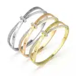 Popular Non Tarnish Clover Bracelet Diamond Stainless Steel 18K Gold Plated Clover Bangle Bracelet With Diamonds