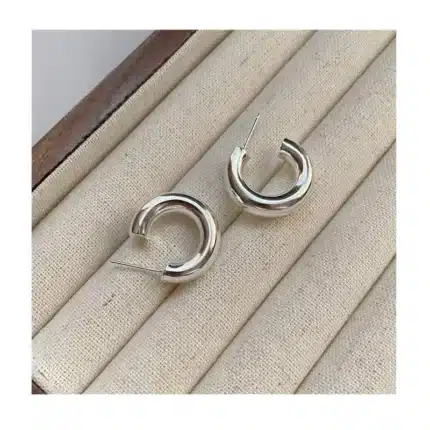 Fashion 925 Sterling Silver Luxury Glossy Face C Shape Hoop Earrings for Girls Women Christmas Gifts