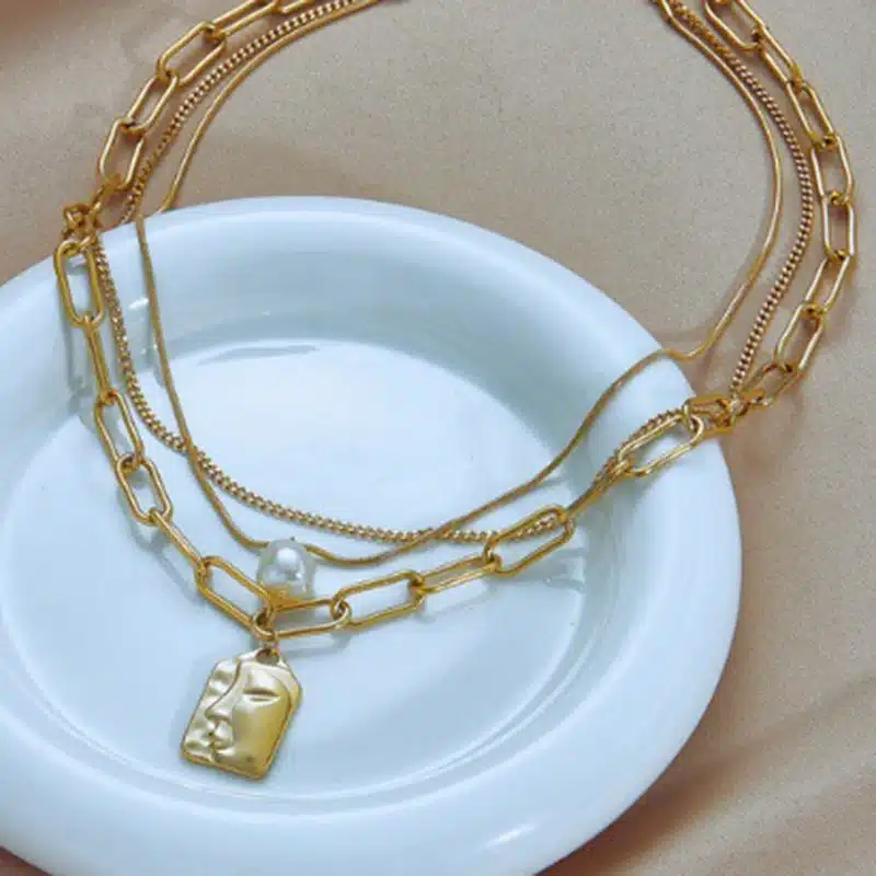 Key attributes Jewelry Main Material:Stainless Steel Plating:Gold Plated Jewelry Type:NECKLACES Style:TRENDY Gender:Unisex Shapepattern:pearl Occasion:Anniversary Main Stone:Pearl