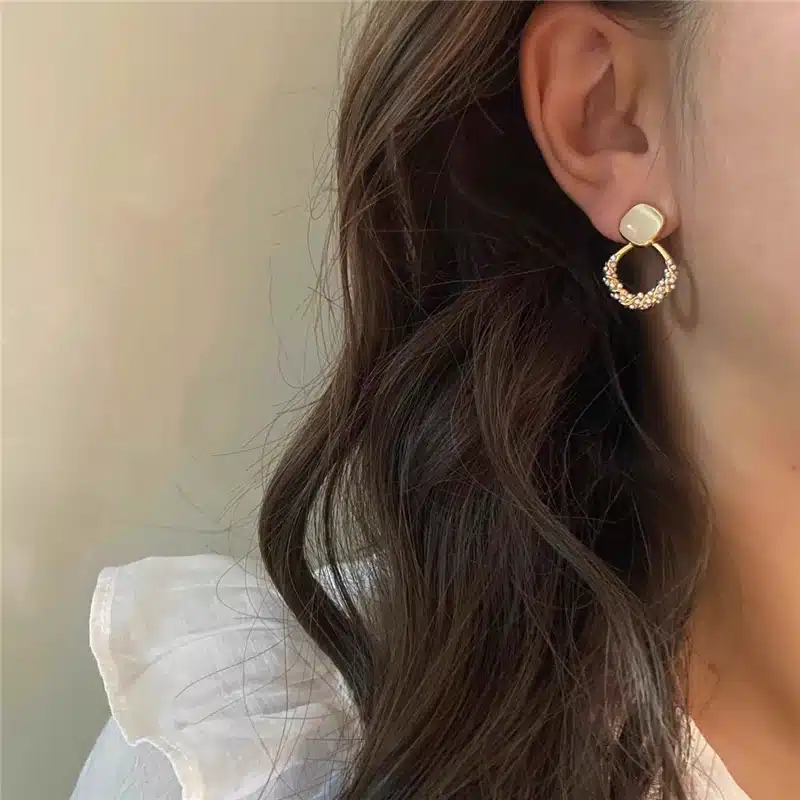 Be the first to review “Fashionable Simple Light Luxury Cat Eye Stone Diamond Pearl Earrings Versatile for Women”
