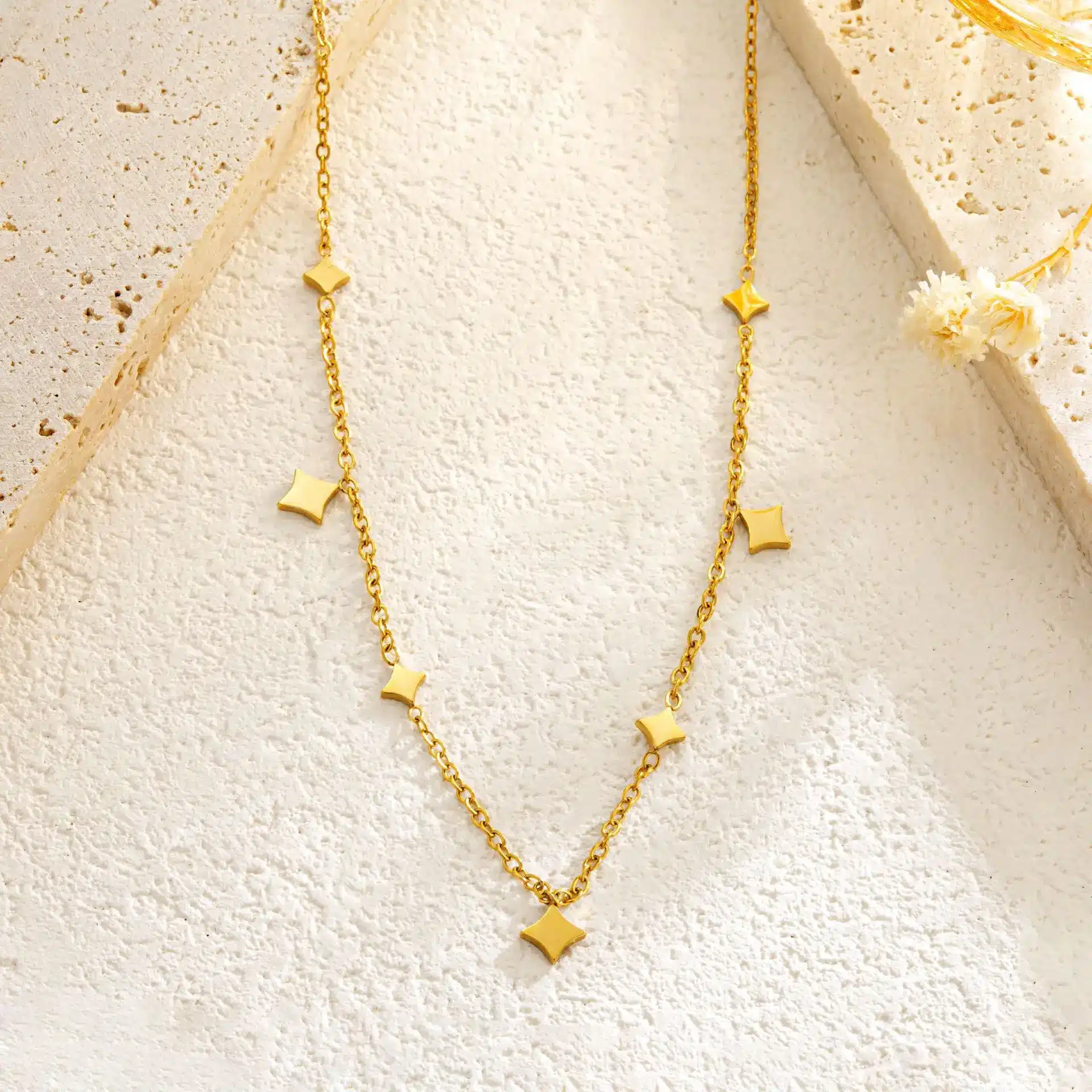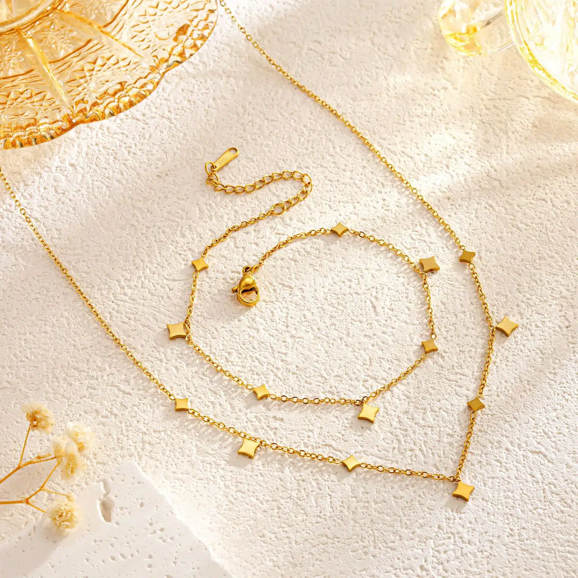 Be the first to review “Fine Chain Star Necklace and Bracelet Set for Women Charm Design Wholesale 18k Gold Sets Chic Stainless Steel Minimalist Jewelry” Cancel reply