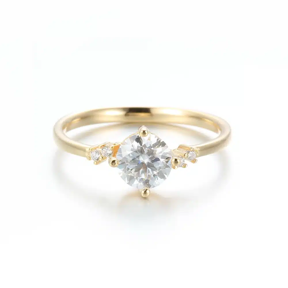 Key attributes Main Stone:Moissanite Plating:Gold Plated, 18K Gold Plated Rings Type:Gemstone Rings Inlay technology:Claw Setting Setting Type:Prong Setting Style:Classic Occasion:Engagement,