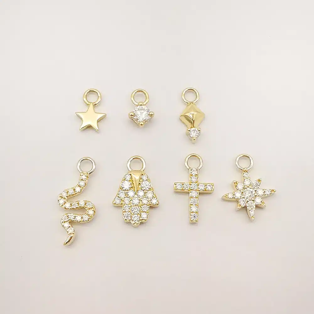 Key attributes Jewelry Findings Type:Charms Shape:Star Main Stone:Lab Diamond Usage:For Necklace Making, For Bracelet Making, For Earring Making