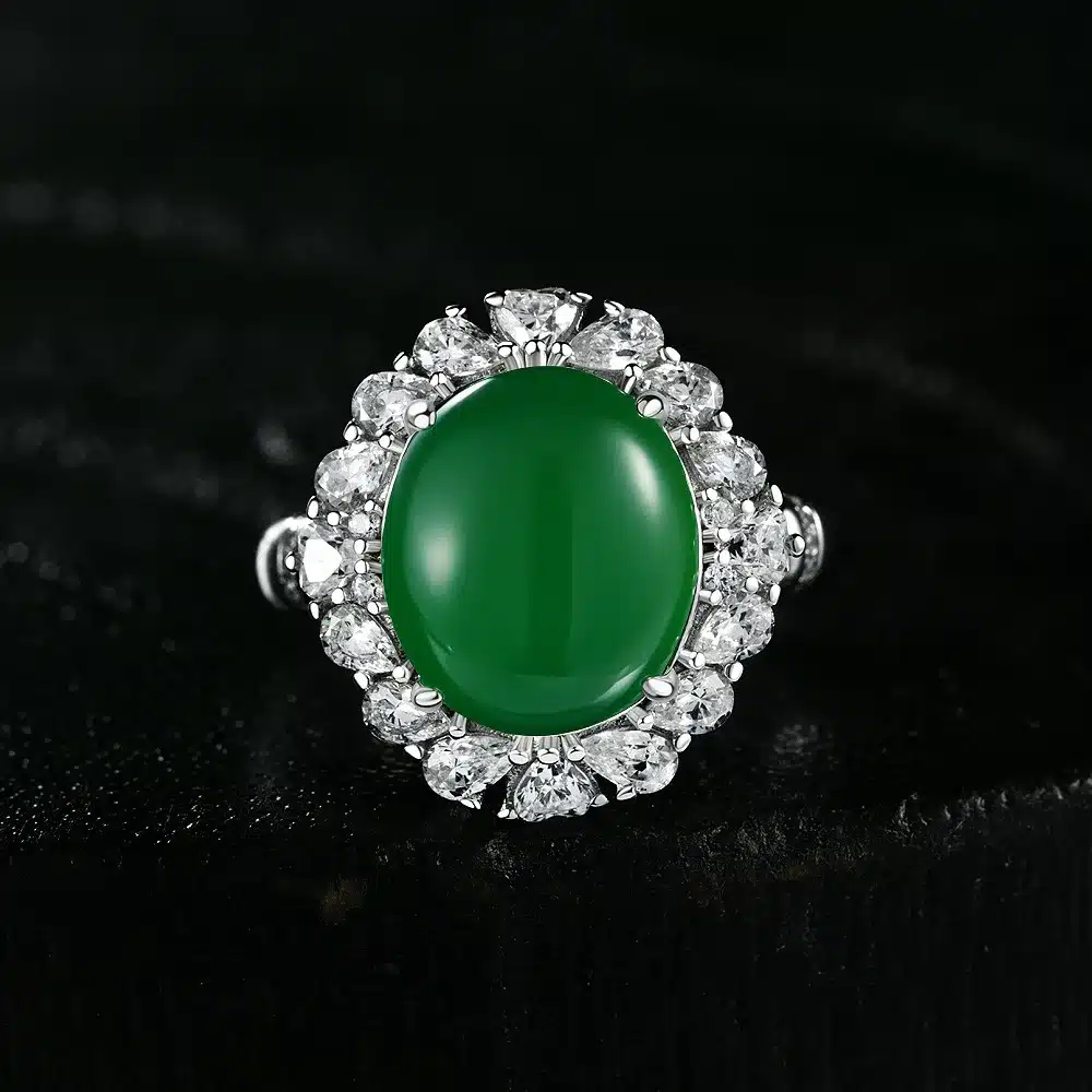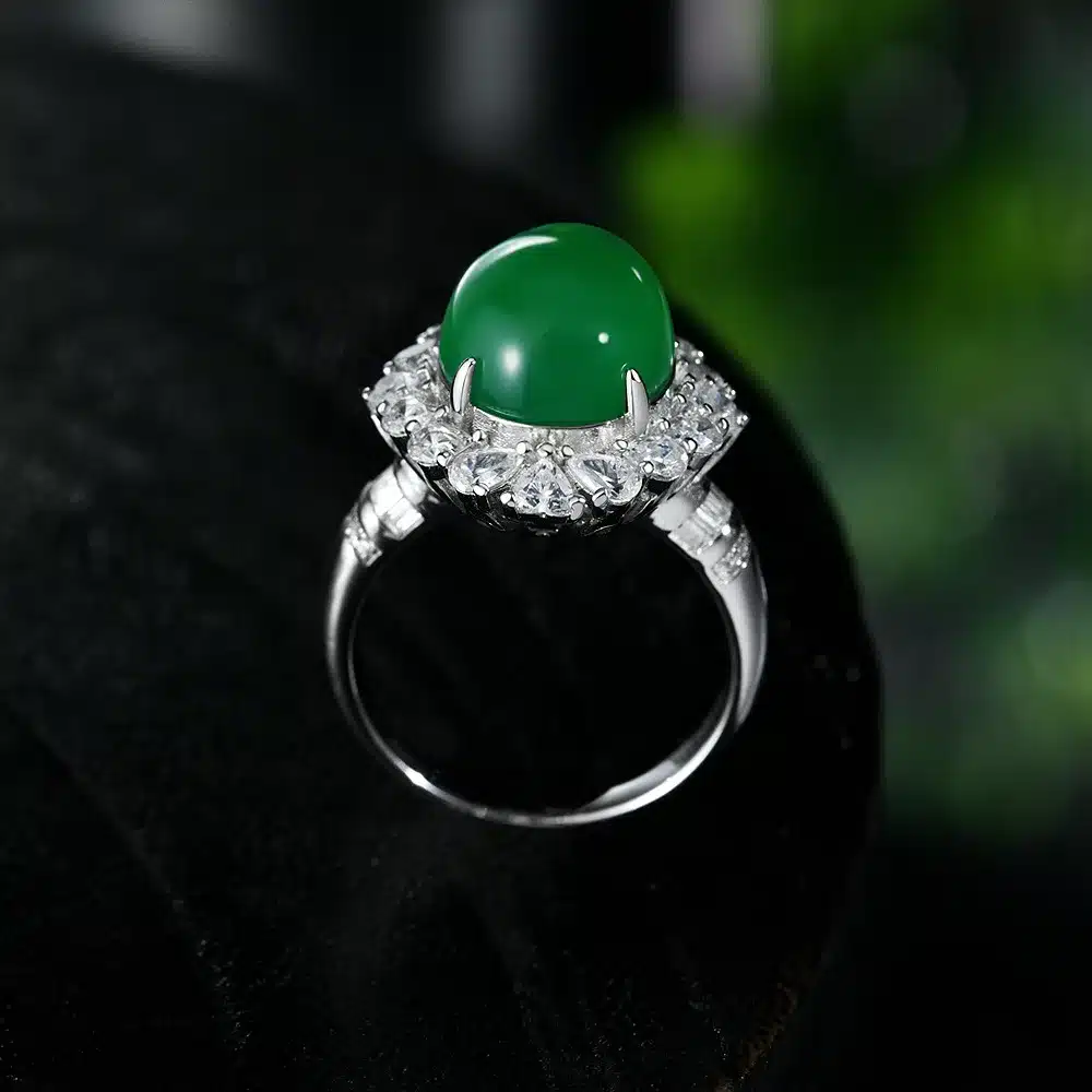 Fine Jewelry 925 Silver Ring Women Jewelry 12x14mm Oval Cut Green Agate Wedding Ring