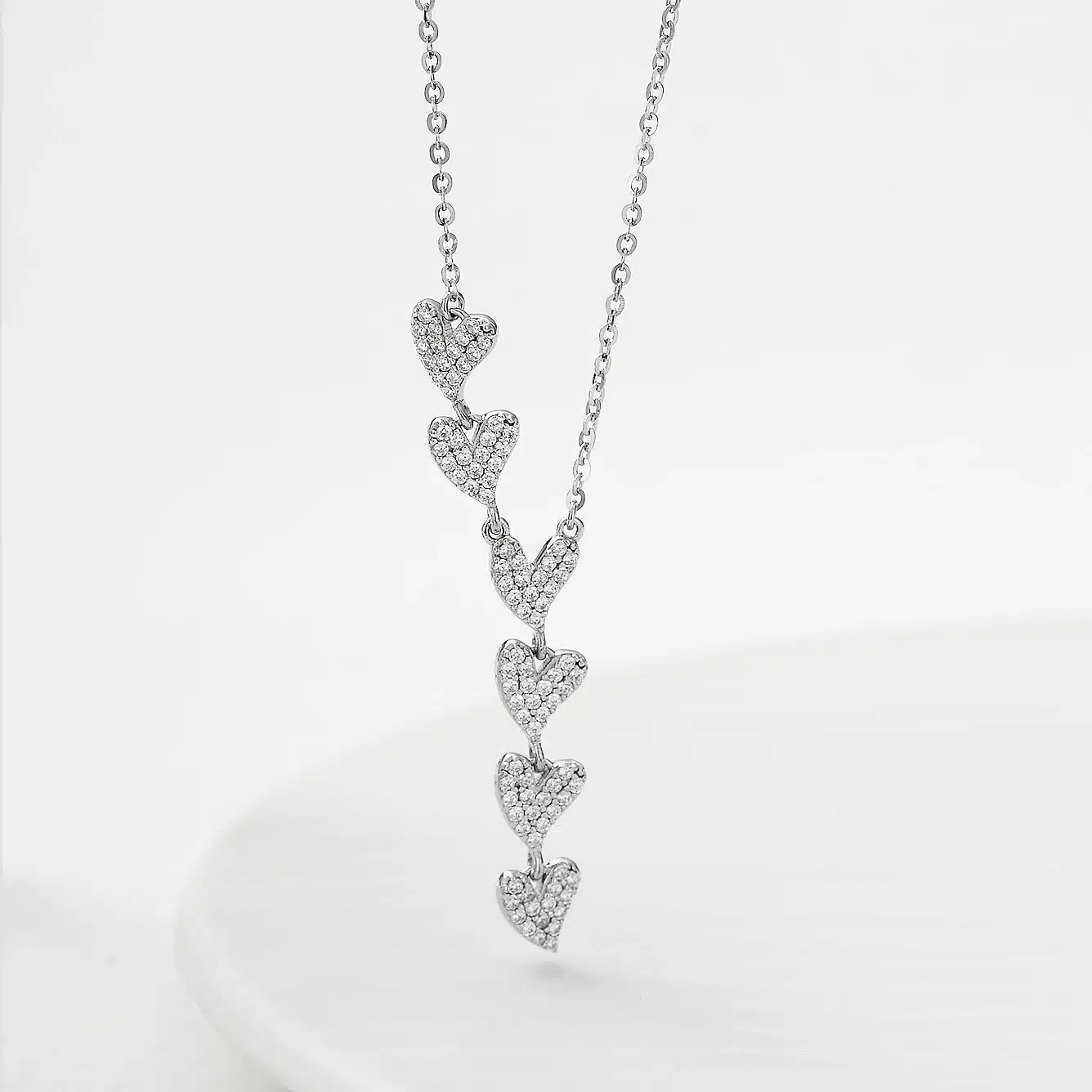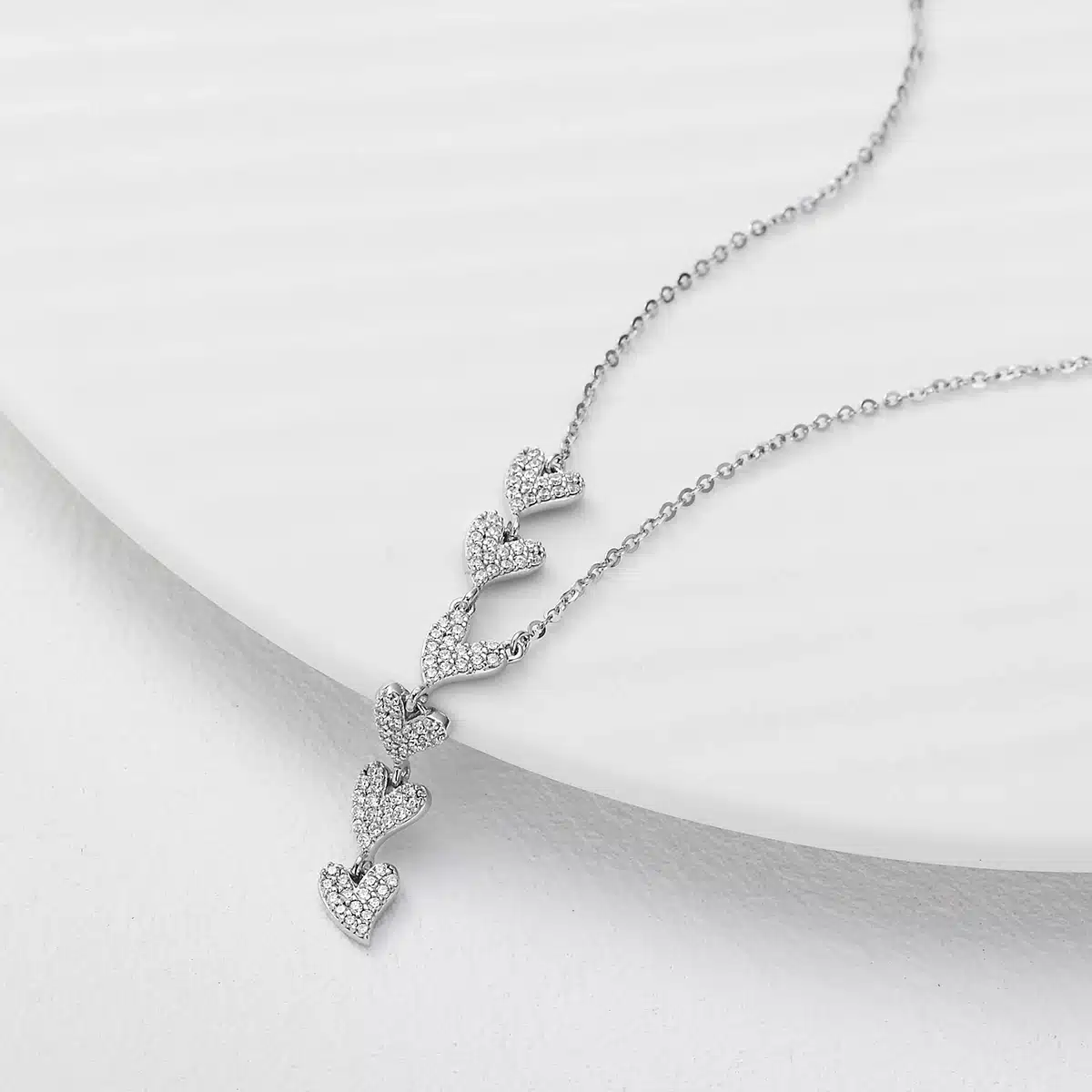 YINSAKI Wholesale Zircon Heart Pendant Necklace CZ Rhodium Plated Silver Woman Fashion Jewelry Heart Necklace