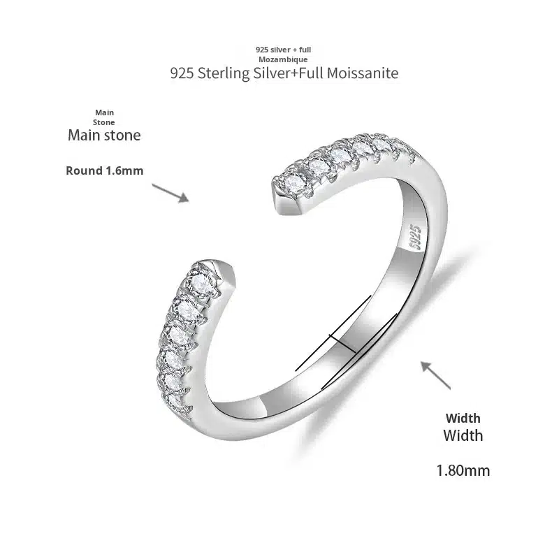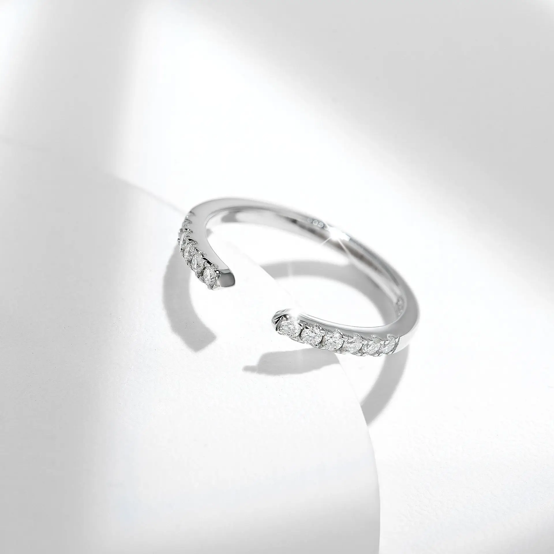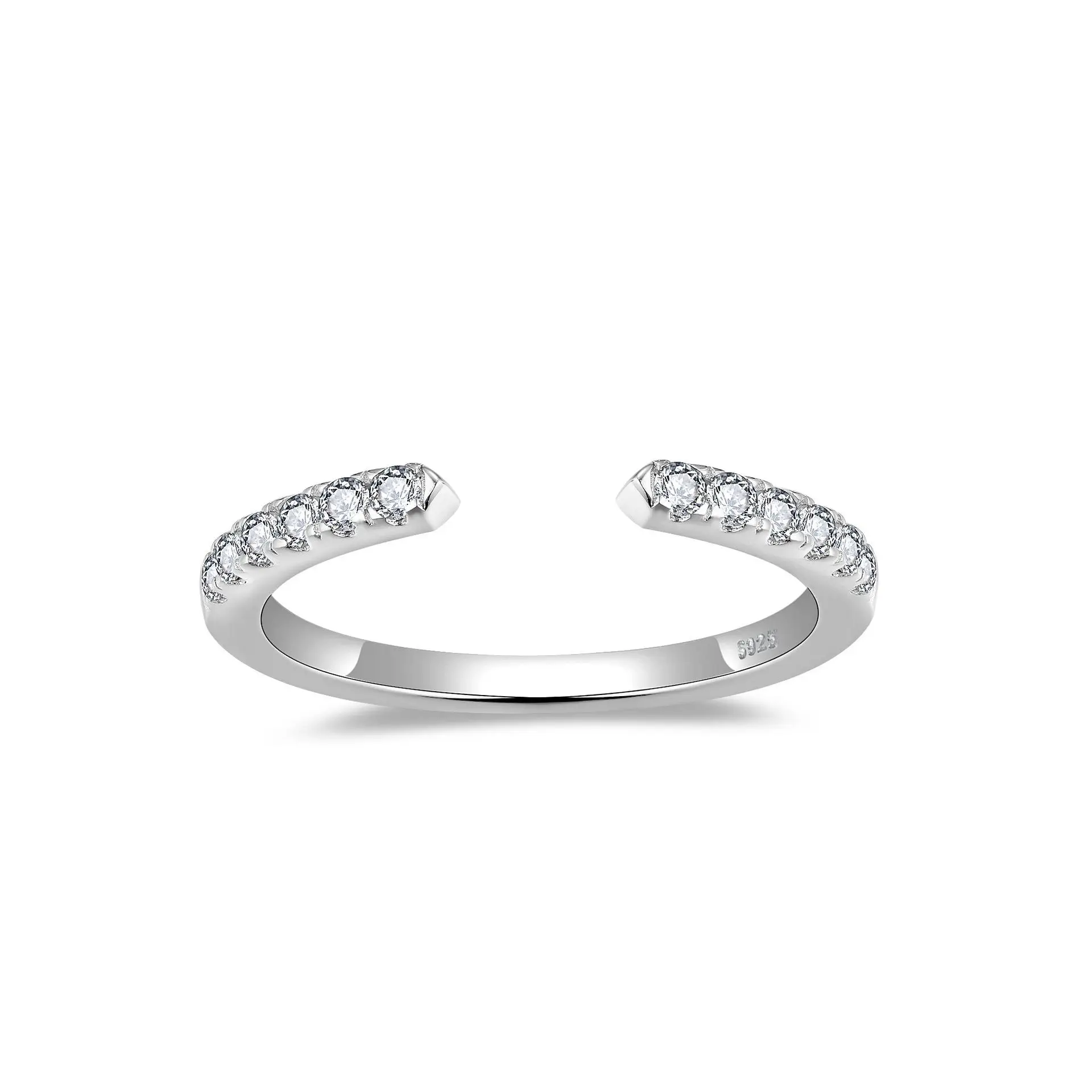 Fine Jewelry Moissanite Ring S925 Silver Plated 18K White Gold Open Band Moissanite Stacked Rings for Women