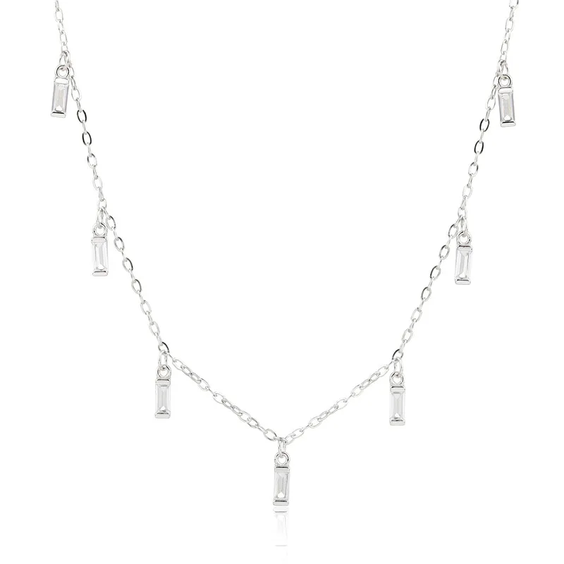 925 Sterling Silver Fashion European and American Style Zircon Necklace Simple Classic Silver Jewelry Necklace for Women