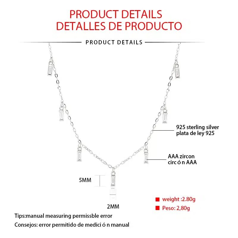 Key attributes Jewelry Main Material:Silver, 925 SILVER Material Type:925 Sterling Silver Occasion:Anniversary Gender:Children’s Jewelry Type:NECKLACES Diamond shape:Round Brilliant Cut Necklaces