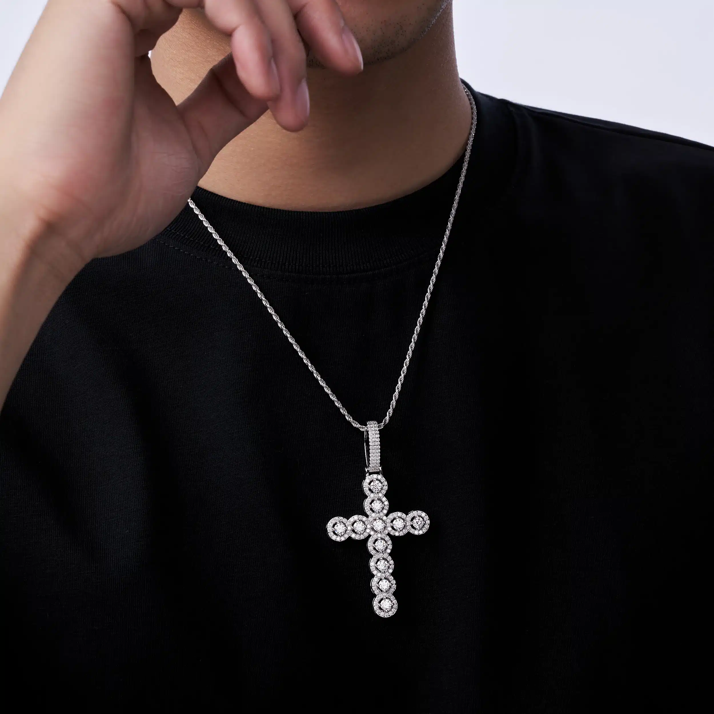 Fine Jewelry Pendant Necklaces Iced Out 925 Silver Moissanite Cross Pendant Necklace Moissanite Chain Necklace Men