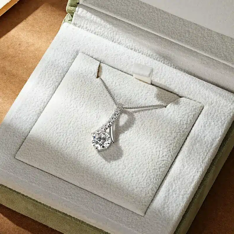 Key attributes Necklaces Type:Pendant Necklaces chain type:Box Chain Jewelry Main Material:925 SILVER Main Stone:Moissanite Plating:White Gold Plated Occasion:Other, Anniversary, Engagement,