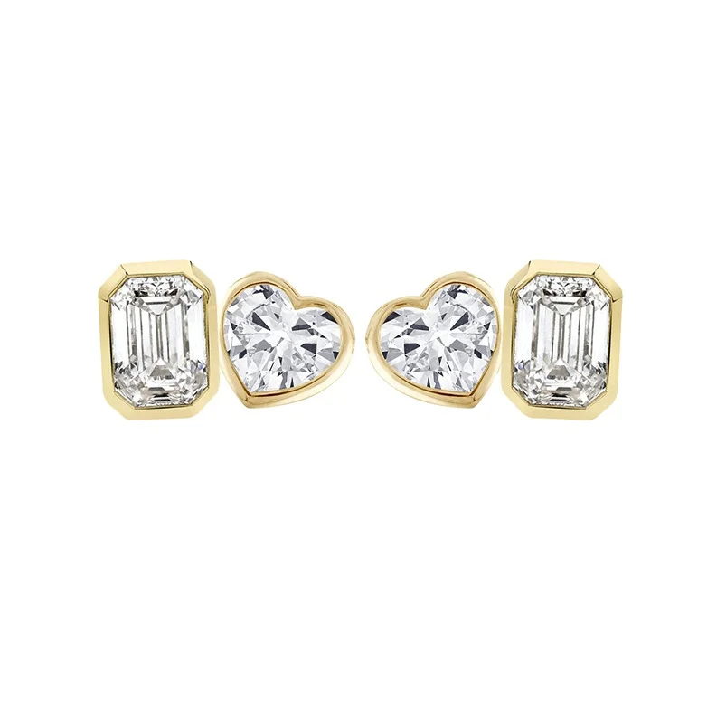 Gemnel 925 Silver Heart Stud Earrings with Diamond Fine Jewelry for Women baguette Pear Shiny Earrings