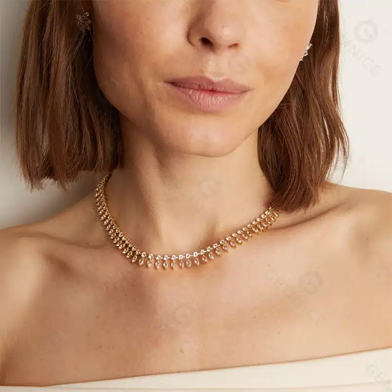 Key attributes Plating:Gold Plated, Rhodium Plated Necklaces Type:Chokers Necklaces chain type:Link Chain Gender:Women’s Jewelry Type:Necklaces Inlay technology:Channel setting Shape:Chain Jewelry