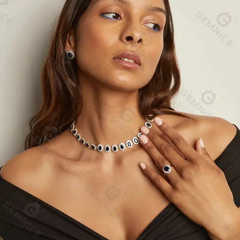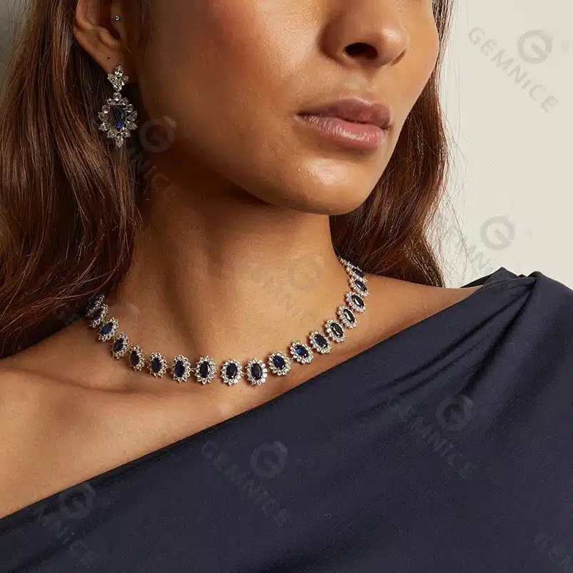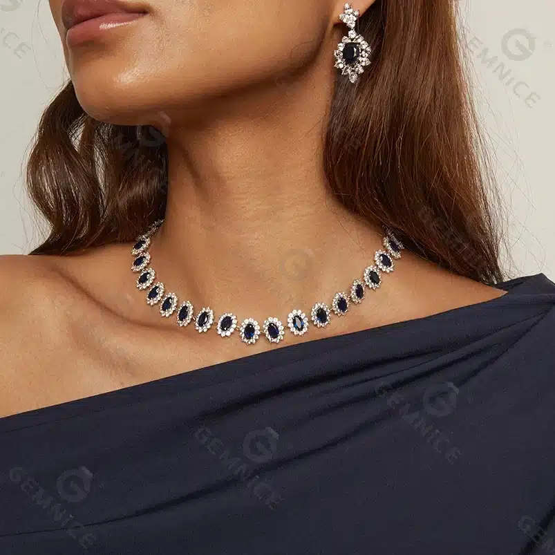 Custom New Arrival Simple Fine Jewelry Sapphire Necklace High End Women’s Jewelry 925 Sterling Silver Topaz Stone Necklace