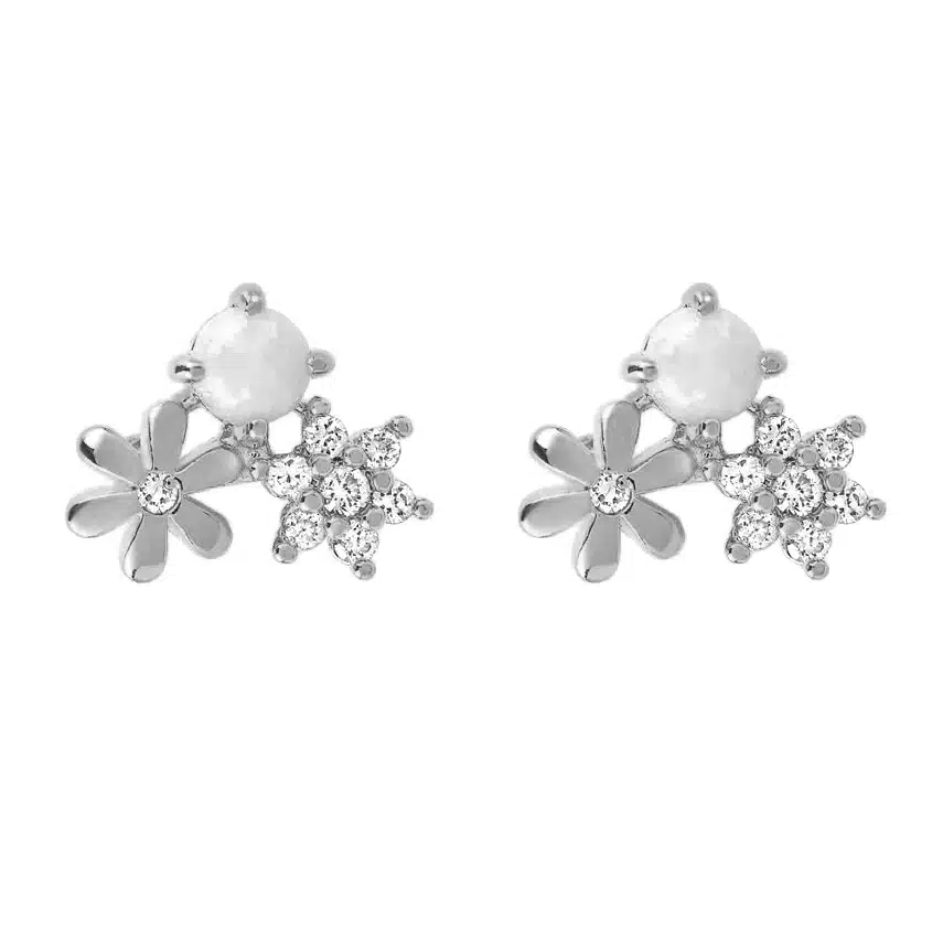 Gemnel 2026 Latest Design 100% Recycled Sterling Silver Dainty Pearl Daisy Flower Girls Stud Earring