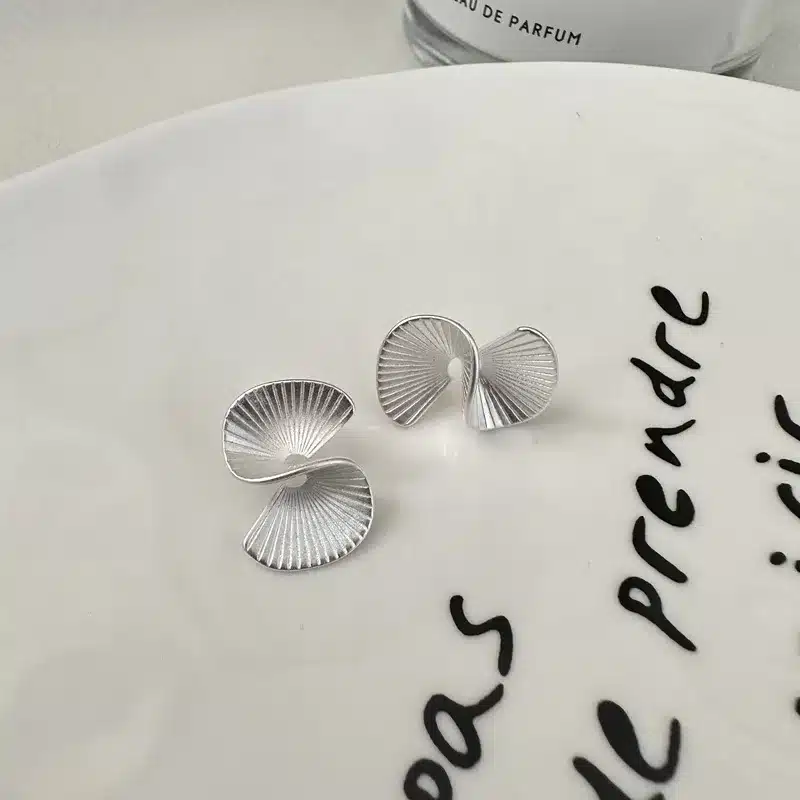 Geometric 925 Sterling Silver Retro Fan-shaped Korean Style Beautiful Stud Earrings Women Jewelry