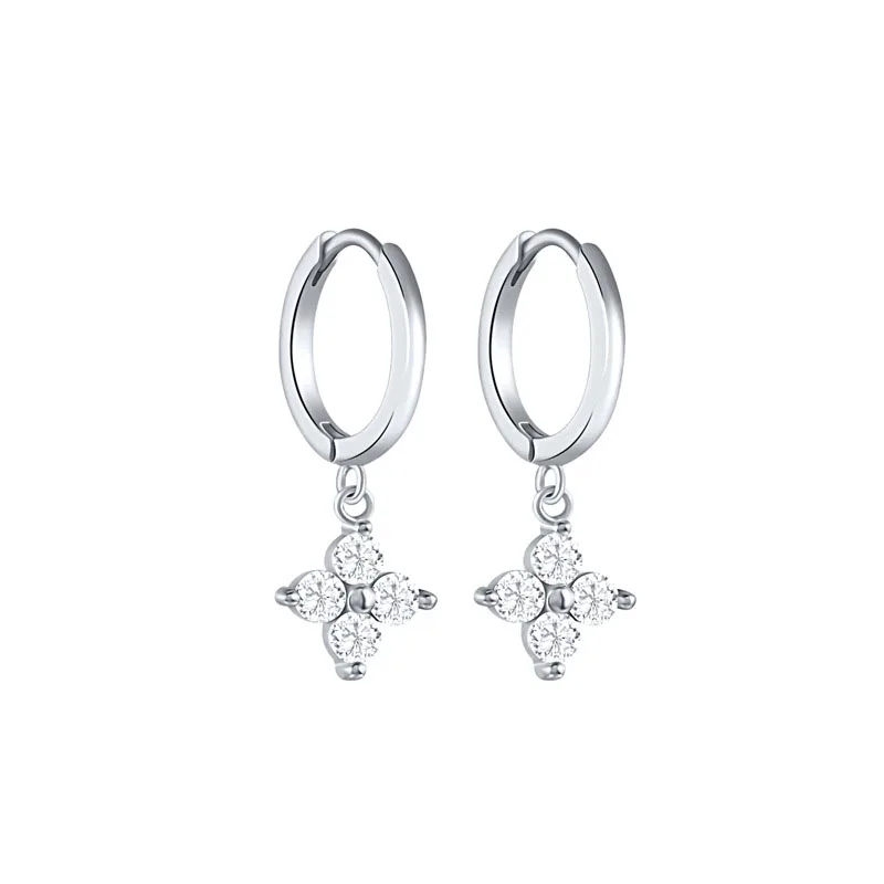 Geometric Plant Jewelry 925 Sterling Silver CZ Zircon Flower Clip Earrings for Girls Beautiful Jewelry