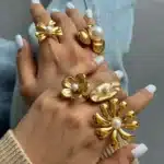 Be the first to review “Gold Plated Stainless Steel Sunflower Sticky Pearls Open End Ring Hundred Titanium Steel Ring for Engagement Party Gift” Cancel reply