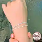 INS Style Girls 925 Sterling Silver Sparkling 2mm Hand Chain Link Stackable Bracelets Decoration for Women Daily Wear