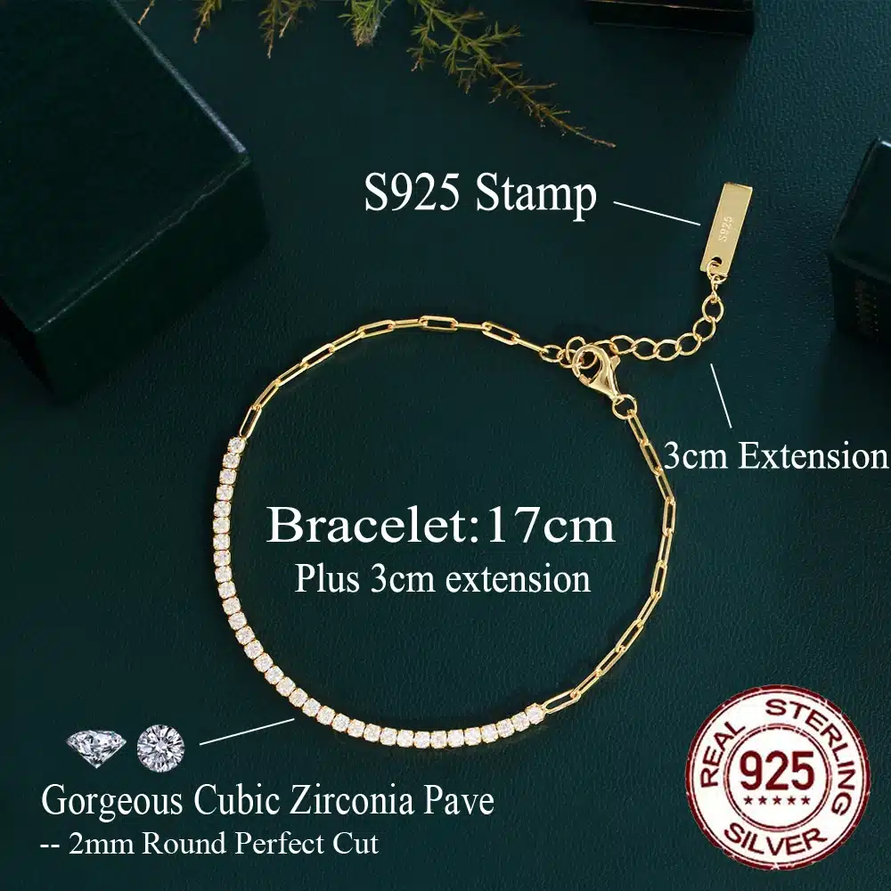 Be the first to review “Good Quality Cubic Zirconia 18k Gold Plated 925 Sterling Silver Adjustable Chain Link Bracelets for Women Jewelry” Cancel reply