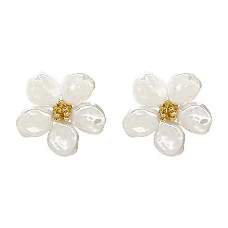 Fashion Jewelry Luxury Temperament White Shell Flower Simulated Pearl Stud Earrings for Women Accessories Gifts