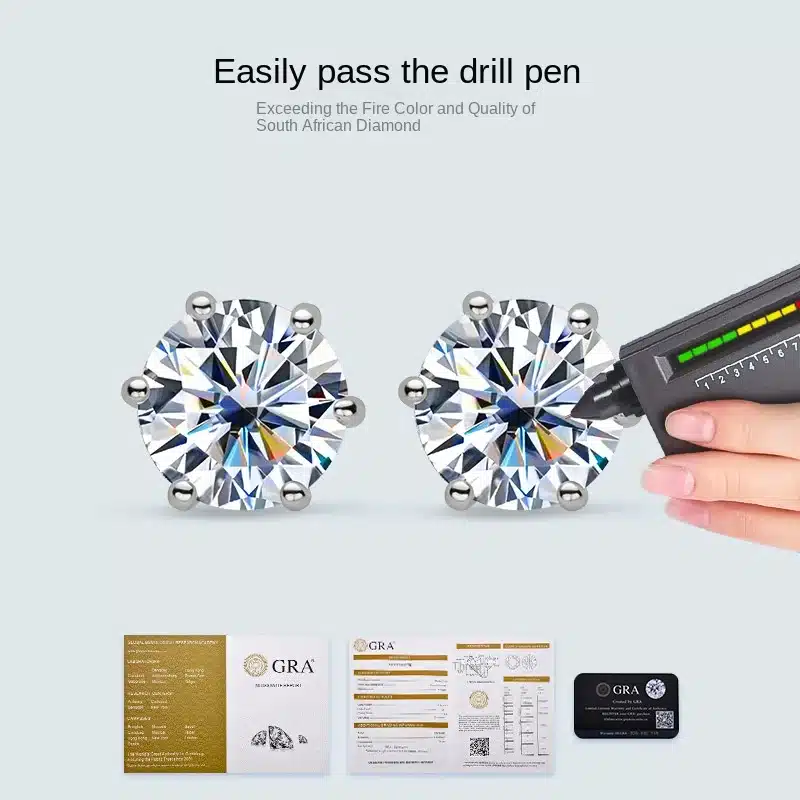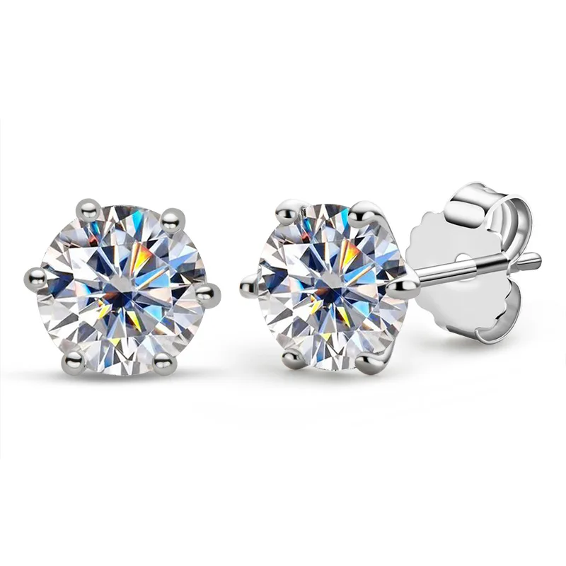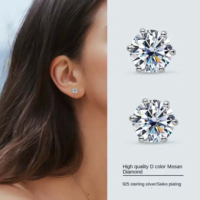Key attributes Jewelry Main Material:Silver Earrings Type:Stud Earrings Style:Trendy Inlay technology:Claw Setting Main Stone:Moissanite Diamond shape:Round Brilliant Cut Shape:Geometric Material