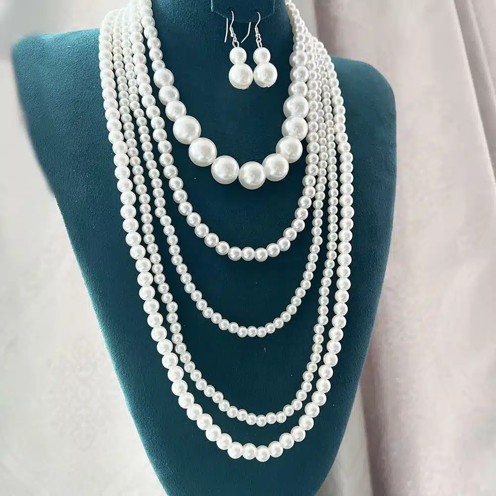Be the first to review “High Imitation Pearl Bridal Necklace Earring Set With Multiple Layers of Beads Wedding Jewelry for Women’s” Cancel reply
