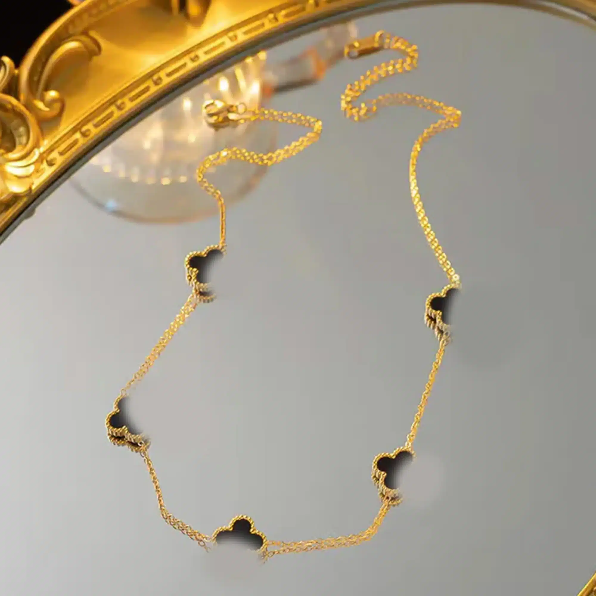 High Quality 5 Flowers Clover Necklace 18K Gold Stainless Steel Multiple Red Green White Four Leaf Clover Necklace