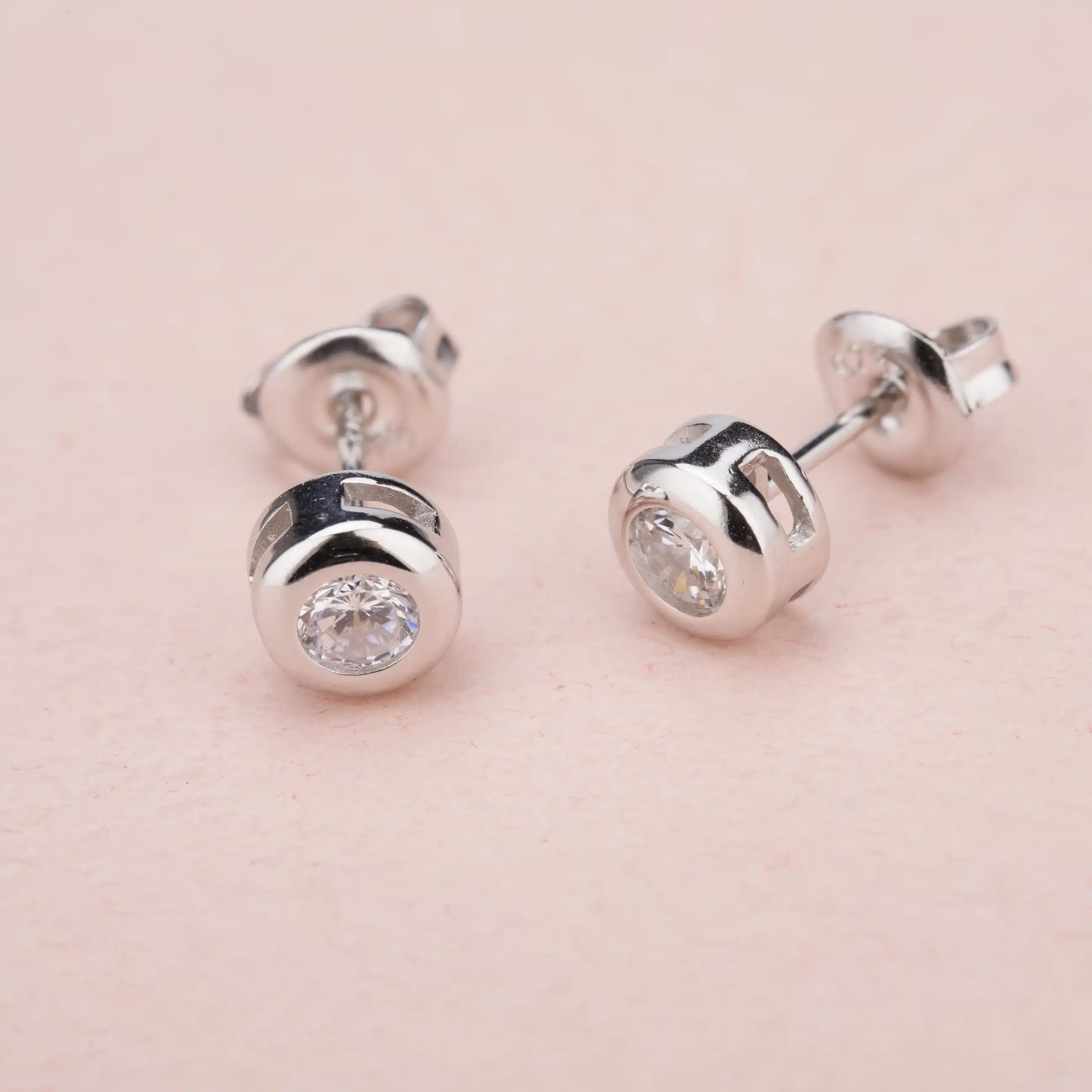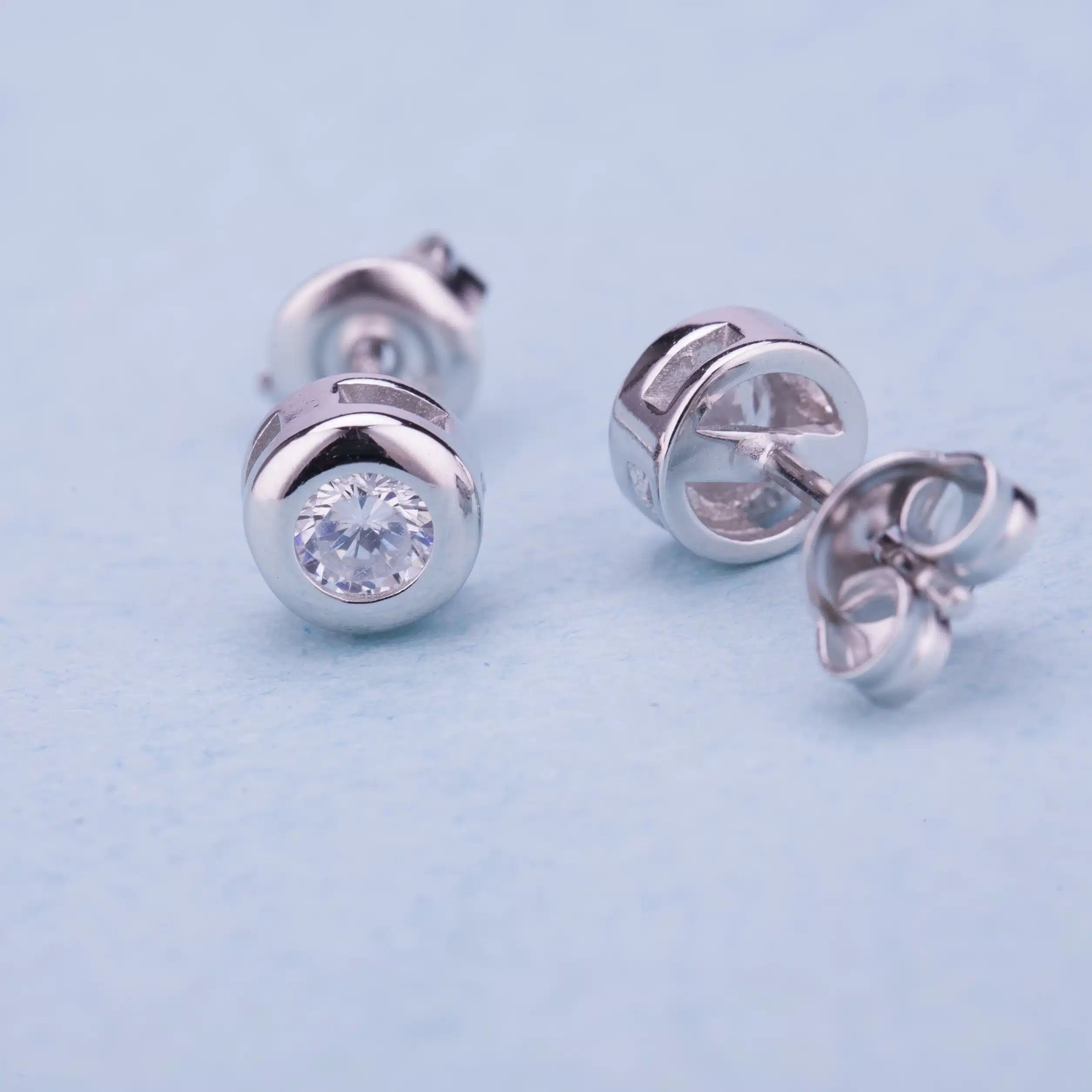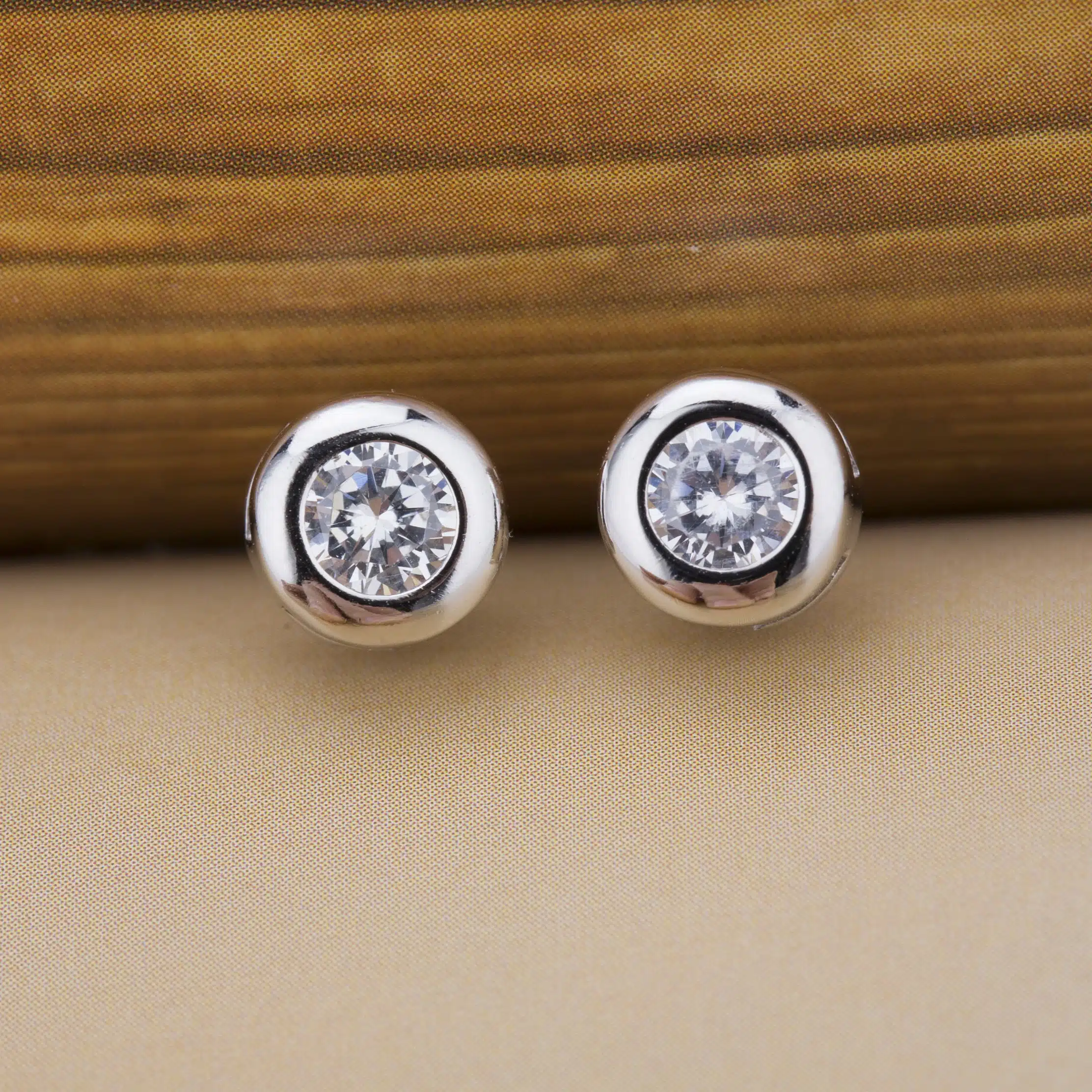 High Quality 925 Silver Cubic Zirconia Single Stone Earrings