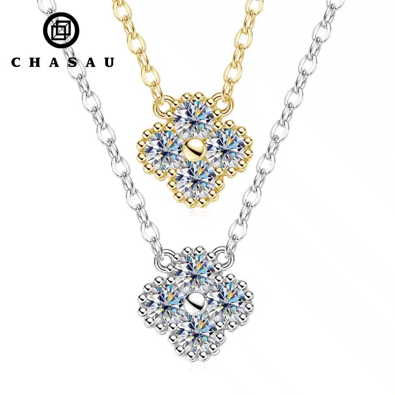 High Quality 925 Sterling Silver VVS D Mossanite Jewelry Round 3mm 0.10ct Moissanite Four-leaf Clover Pendant Necklace for Women