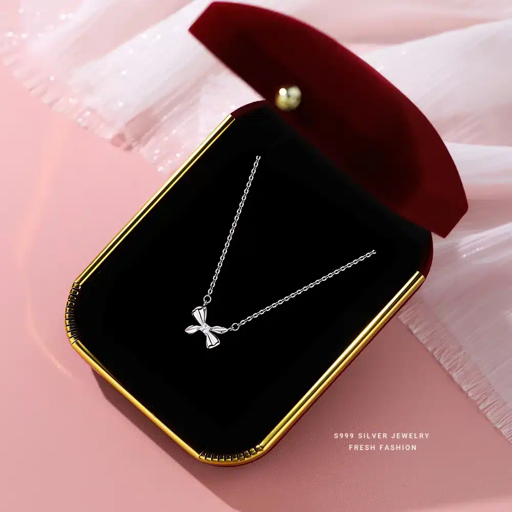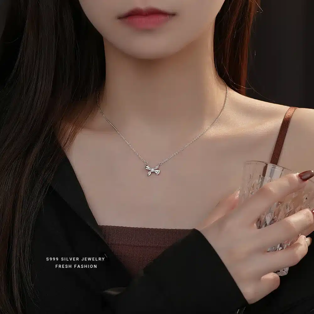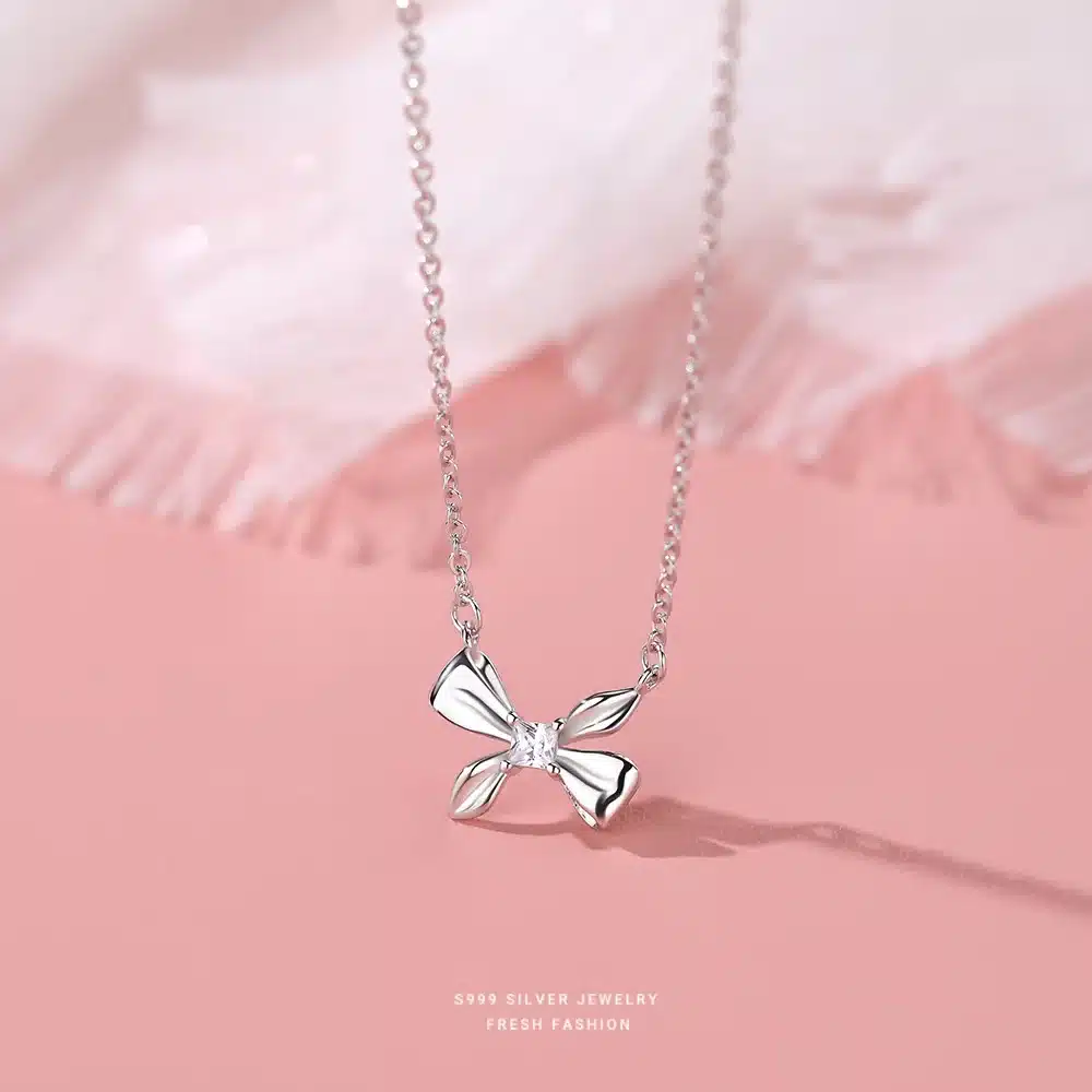 Product Name | High quality 999 sterling silver bow jewelry glossy dainty bow knot pendant necklace for girls holiday wearing |
