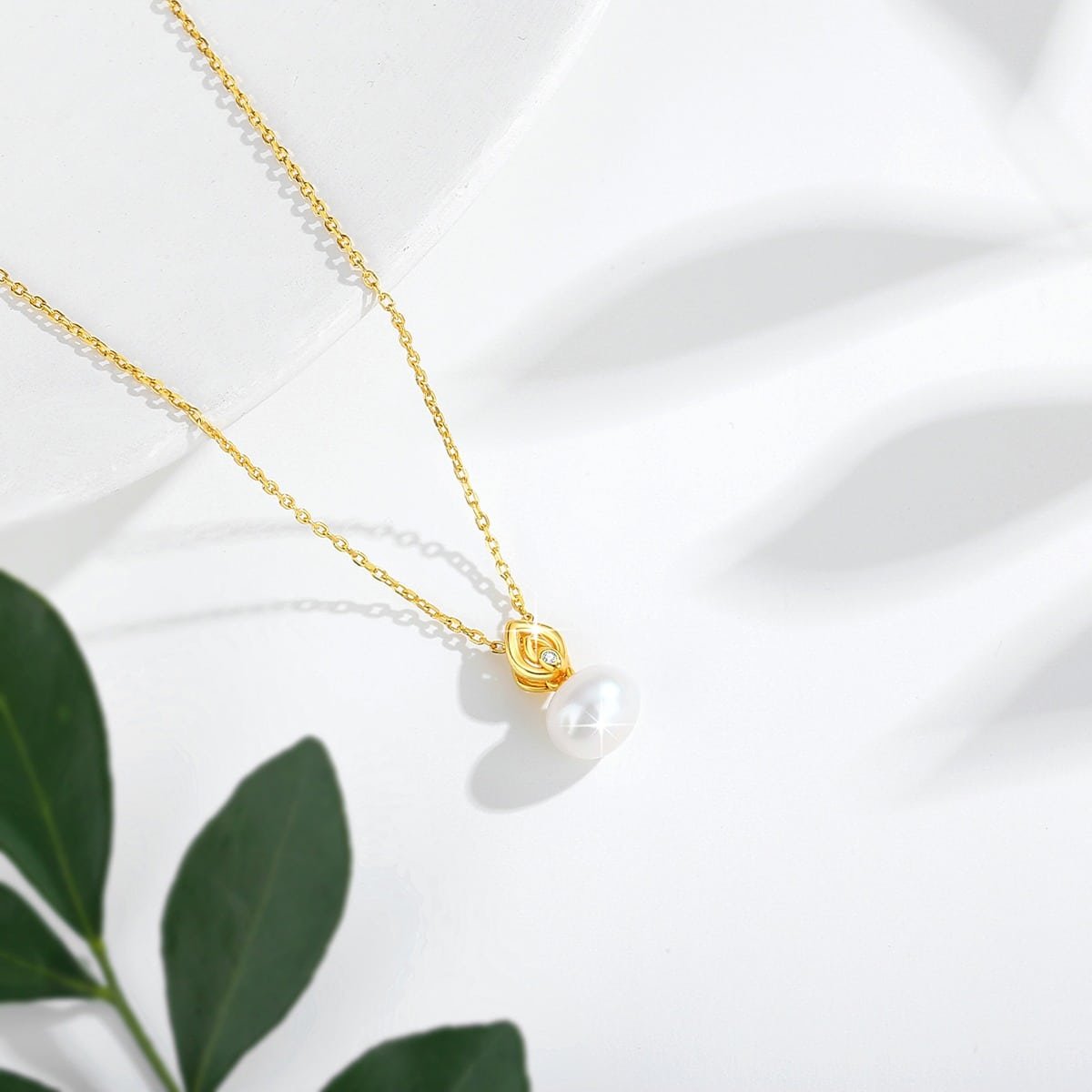 High Quality Jewelry 18K Gold 5D Pendant Necklace Natural Pearl Woman Necklace Pendant Engagement