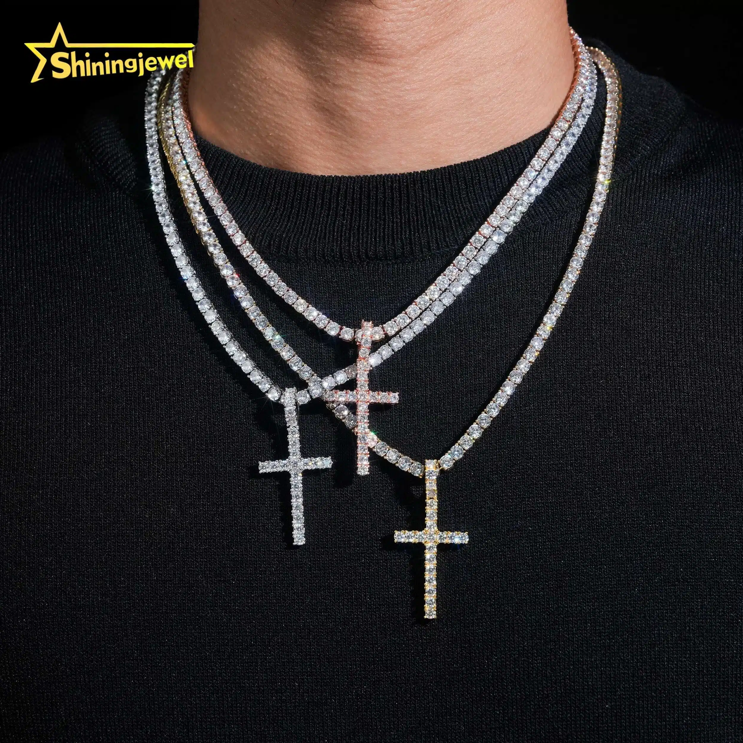 Key attributes Jewelry Main Material:925 SILVER Main Stone:Moissanite Jewelry Type:Pendants or Charms Style:Hiphop Shape:Cross Inlay technology:Claw Setting Pendants or Charms