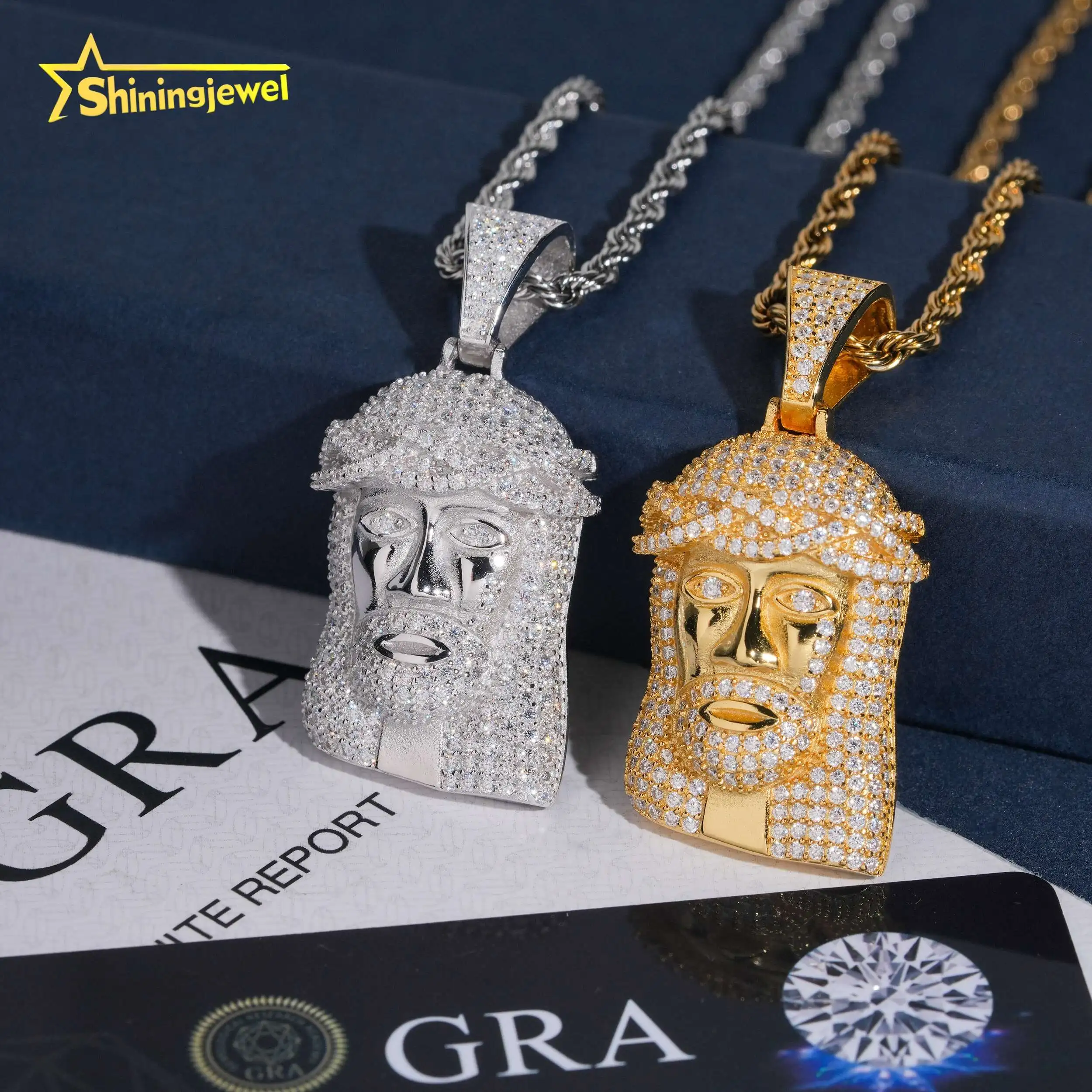 Hot Selling Hip Hop Pendant Charms Iced Out 925 Silver Gold Plated Jesus Pendant VVS Moissanite Custom Pendant for Men Women