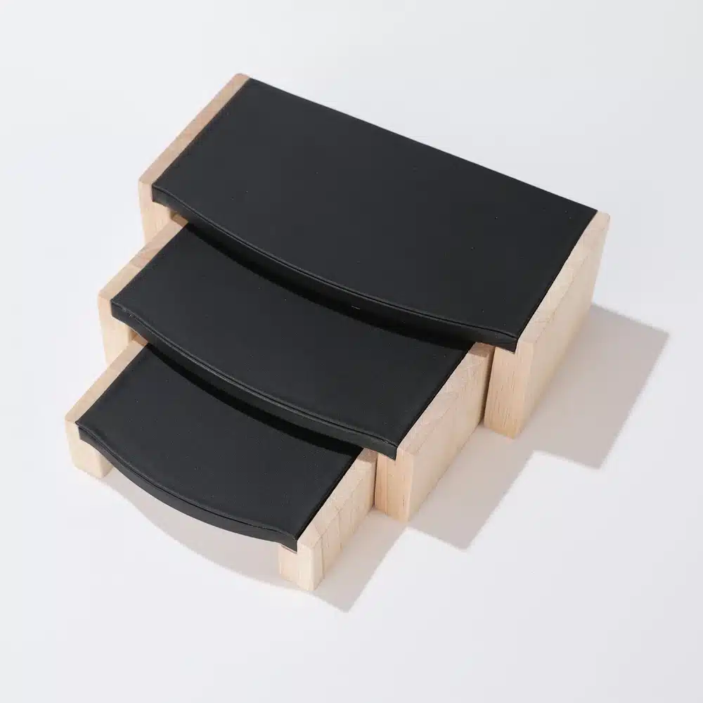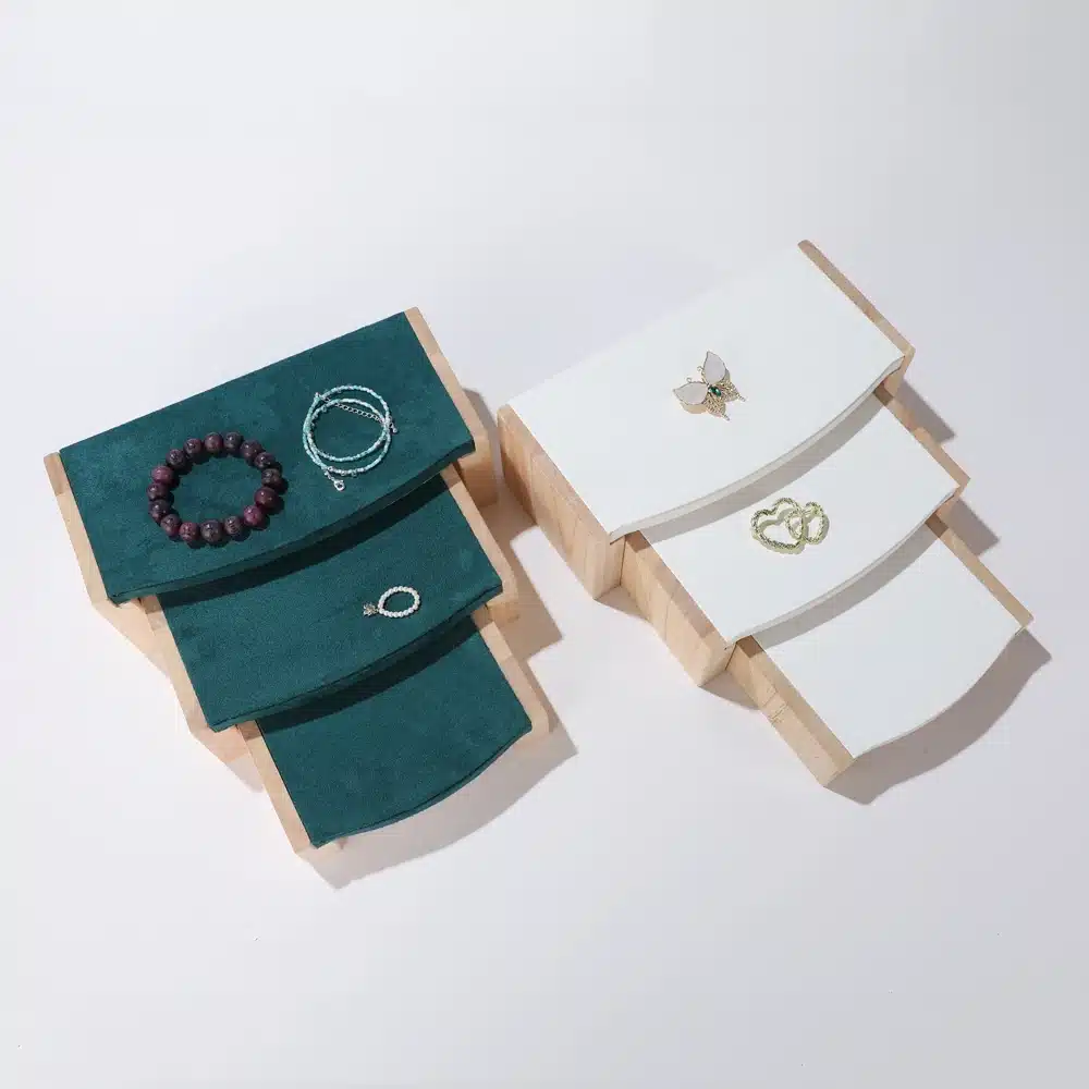 Custom Logo Eco-friendly Beige Velvet Bamboo Wooden Tray Jewelry Earring Ring Display Set Stand for Packaging & Display