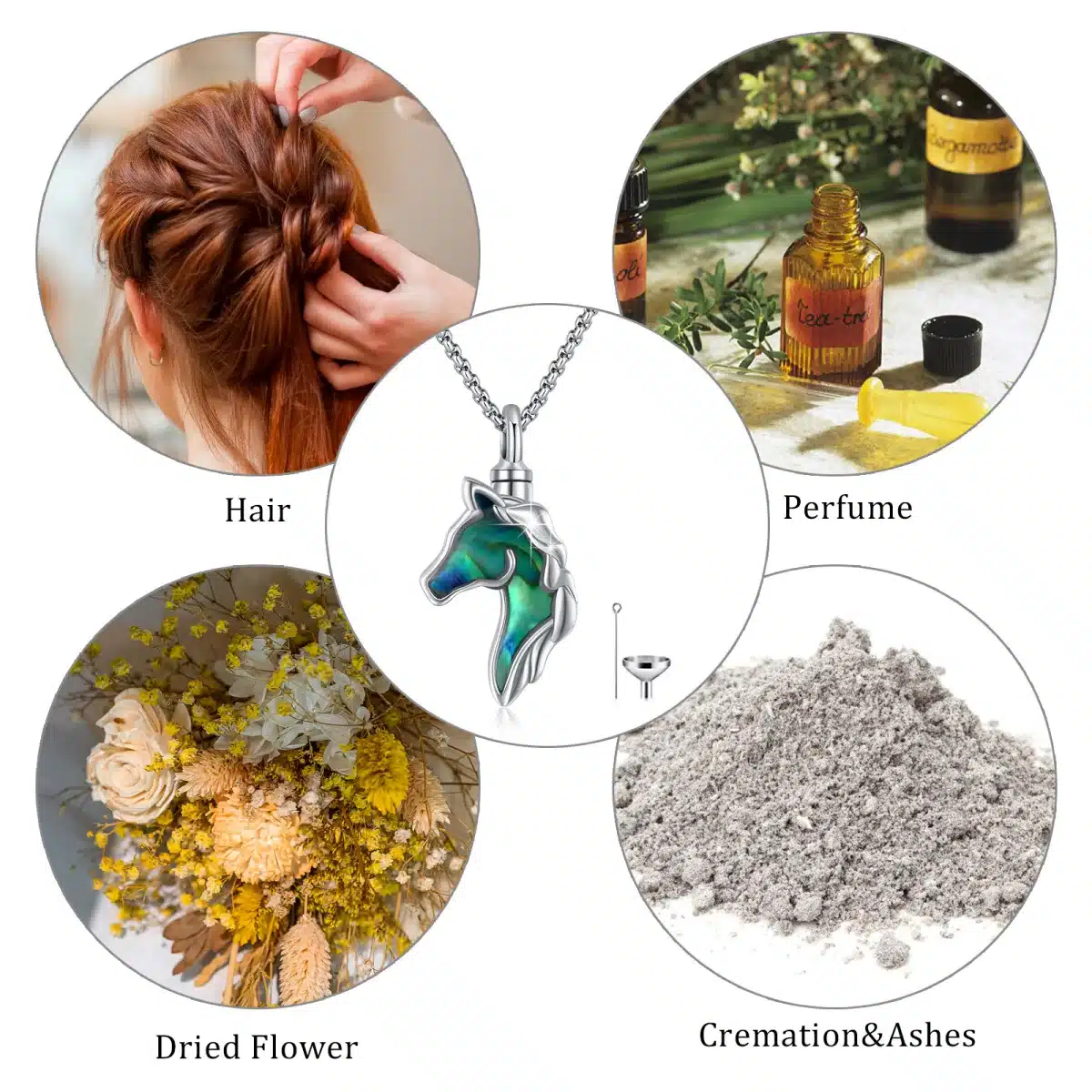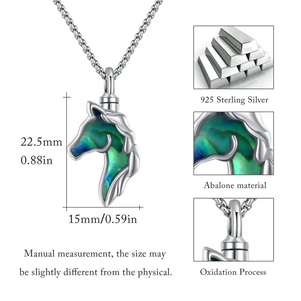 Horse Abalone Shellfish 925 Sterling Silver Urn Necklace for Ashes Cremation Ashes Memorial Jewelry