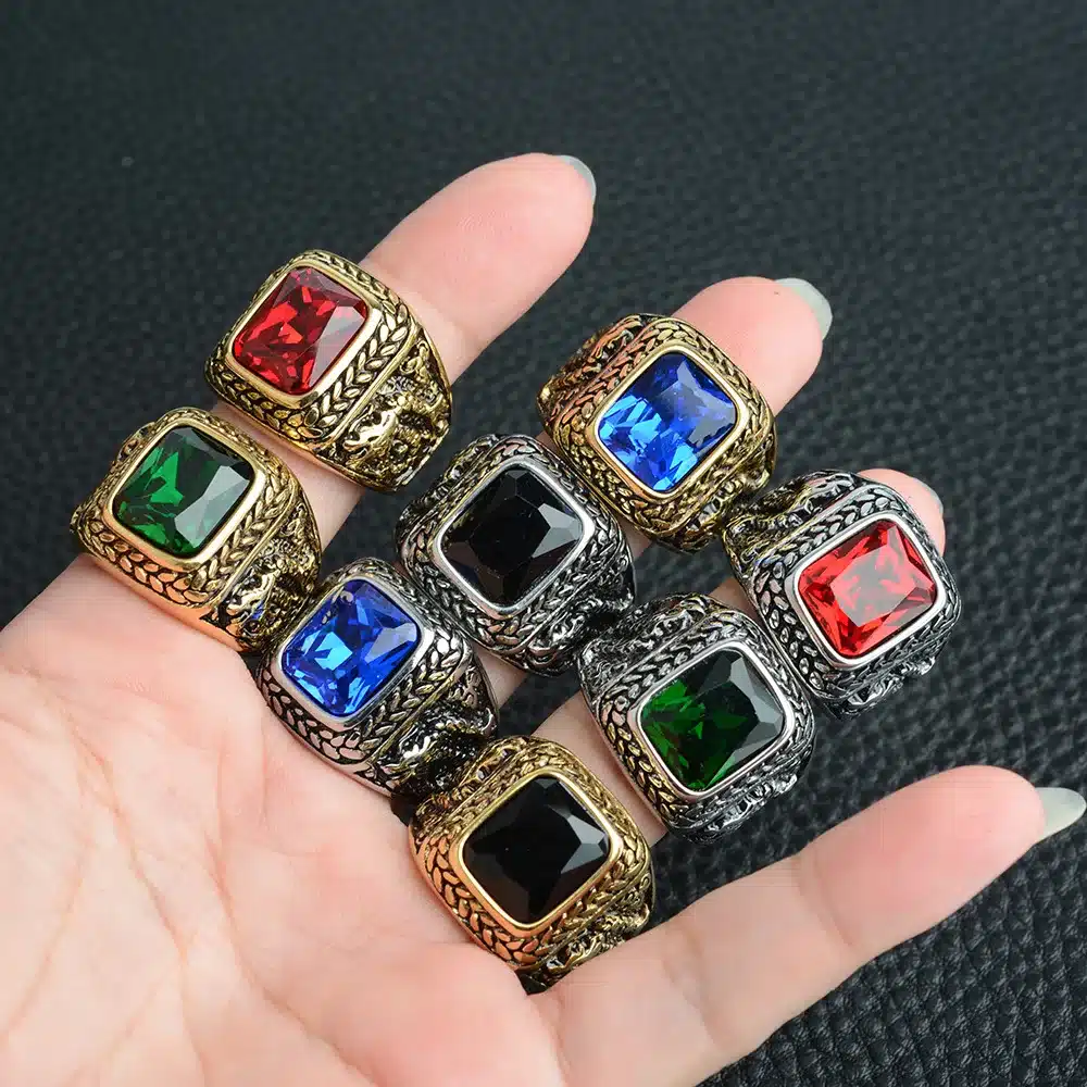 Be the first to review “Hot New Men’s Titanium Steel Geometric Fly Dragon Ring Oval Cut Zircon Stone Blue Black Green Red-Hip Hop Jewelry for Parties” Cancel reply