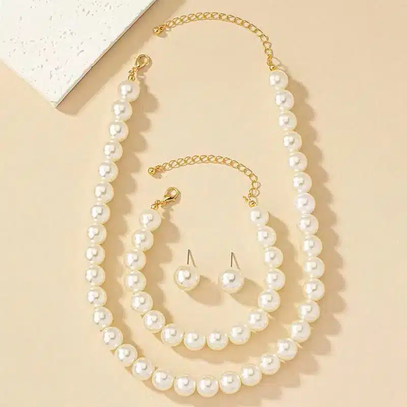 Key attributes Jewelry Main Material:ABS Pearl Style:TRENDY Jewelry Sets Type:Necklace/Earrings Jewelry Type:Jewelry Sets Shapepattern:Geometric Occasion:Anniversary, Engagement, Gift, Wedding Gender:Women’s Main