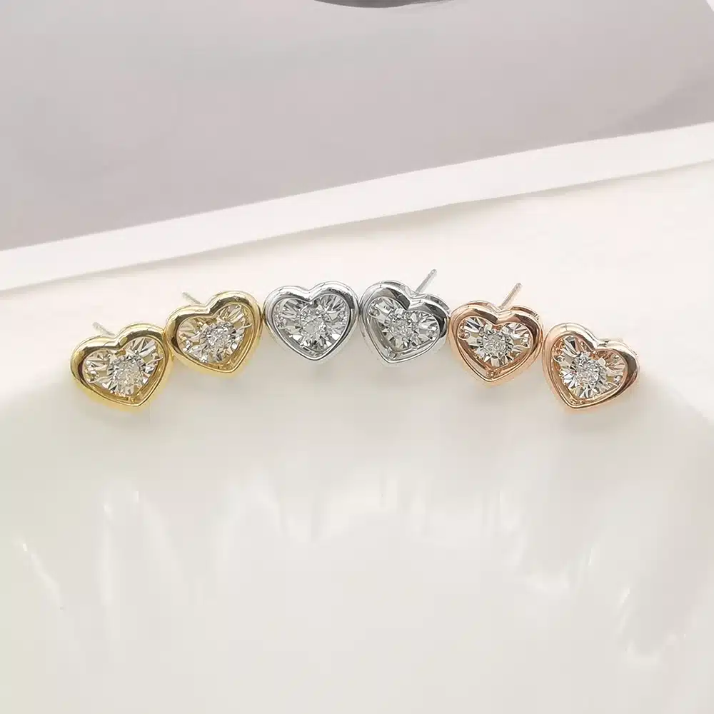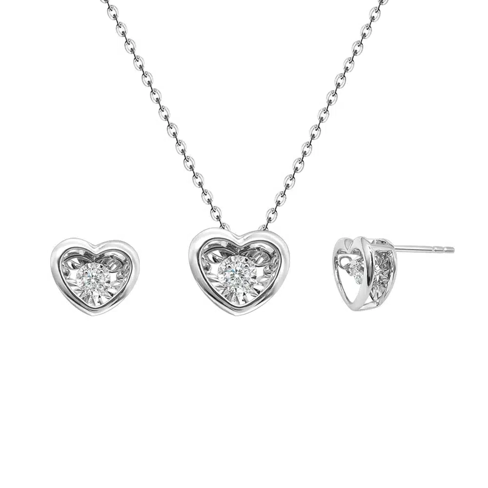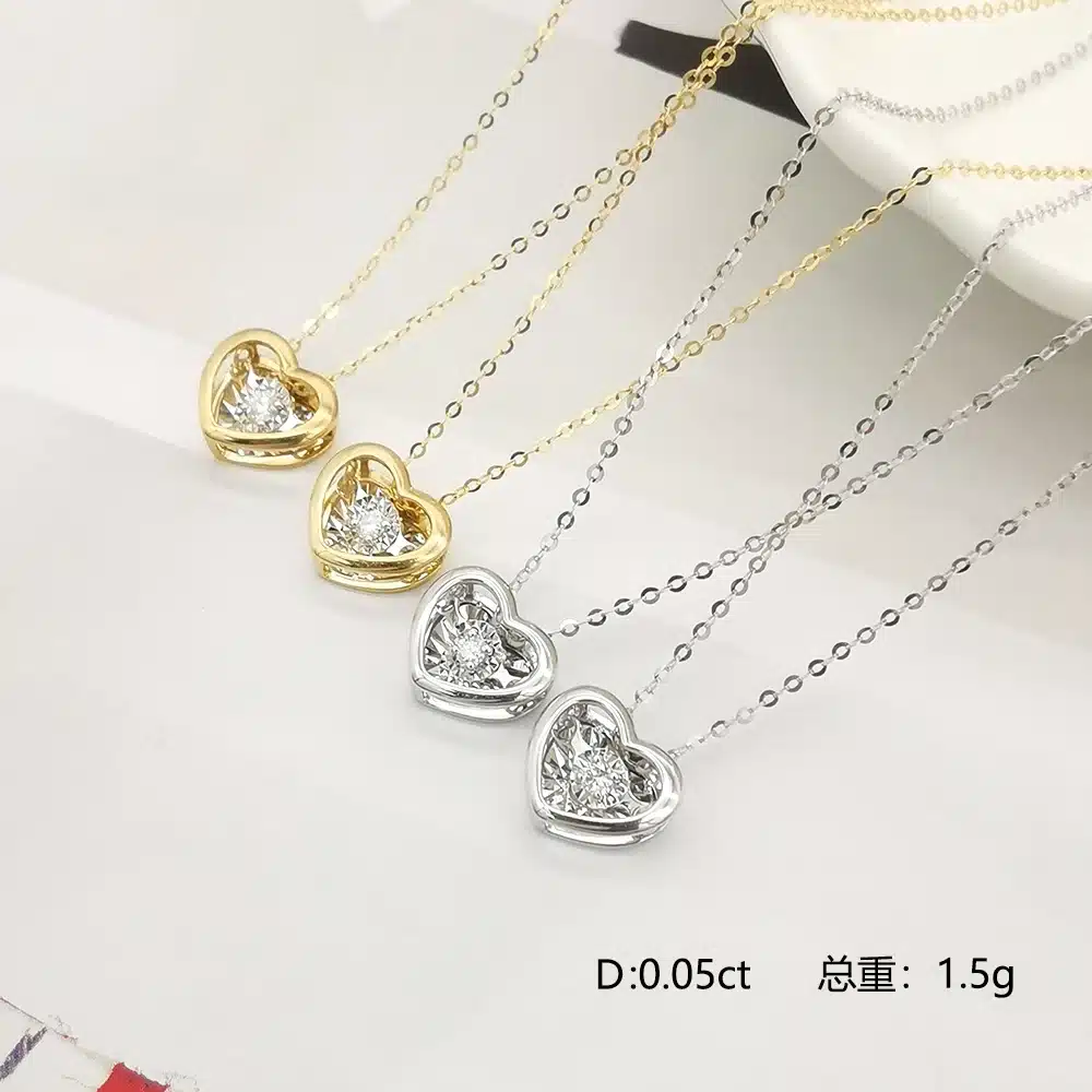 Hot Sale 18K Real Gold Dancing Diamond Heart Pendant Chain Necklace Earrings Jewelry Set