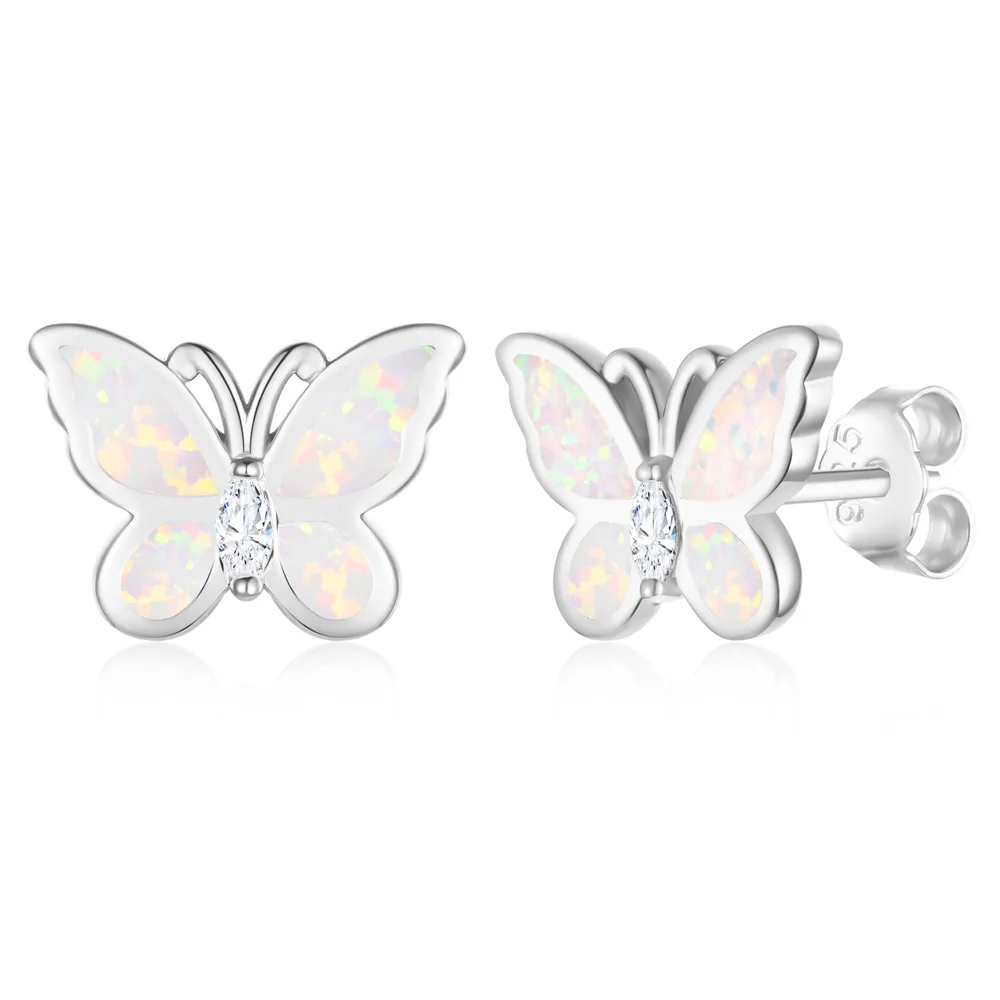 Brass Jewelry High Quality 925 Sterling Silver White Opal butterfly Set Stud Earrings