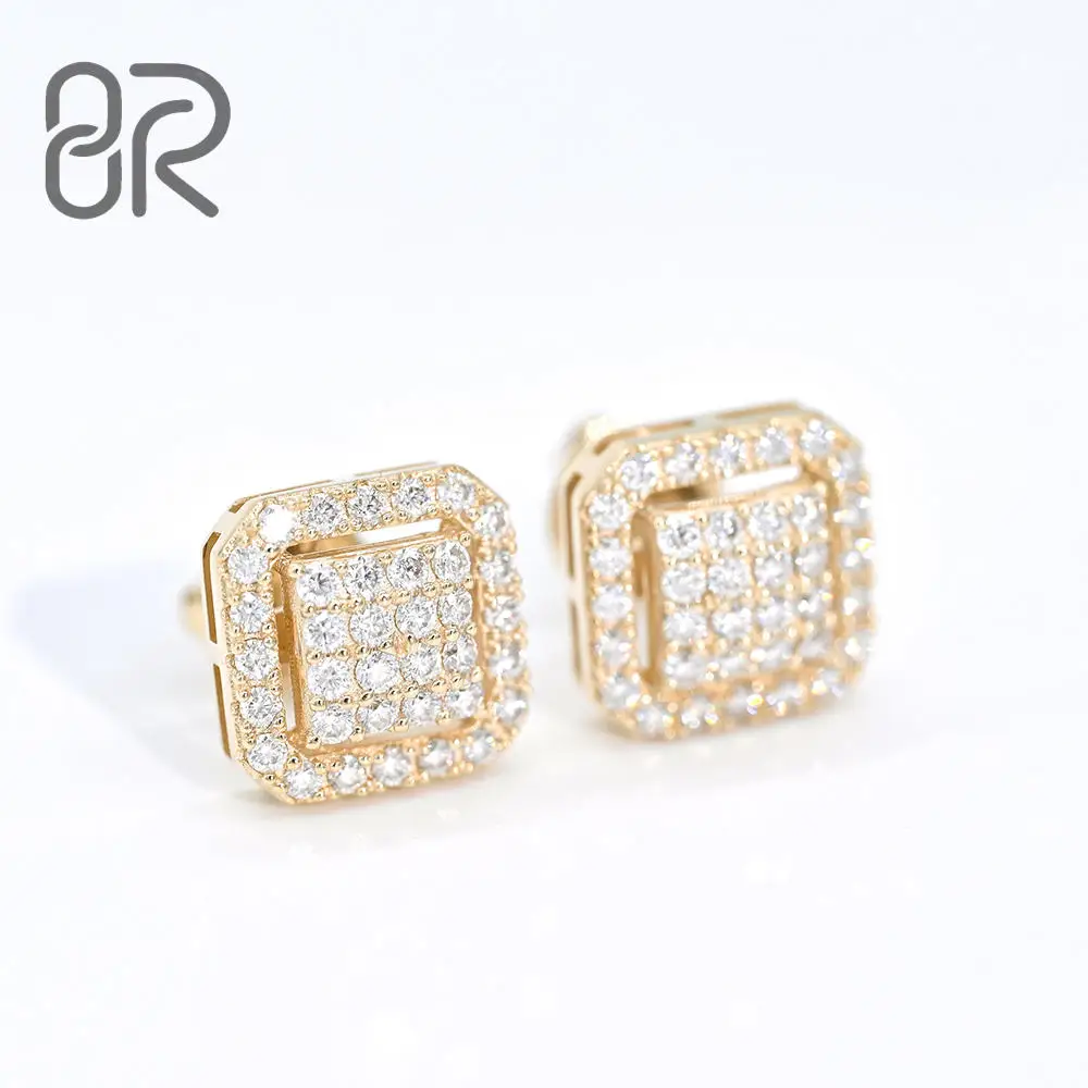 Hip Hop 925 Silver Push Back Bolt Stud Earrings VVS Moissanite Diamond Iced Out Geometric Jewelry 100% Pass Diamond Test