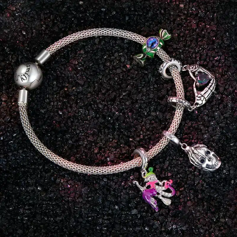 925 Silver Halloween DIY Inlaid Opal Enamel Engraved Pendant Bracelet Vintage Style Rhodium Gold Plating Fashion Jewelry charm