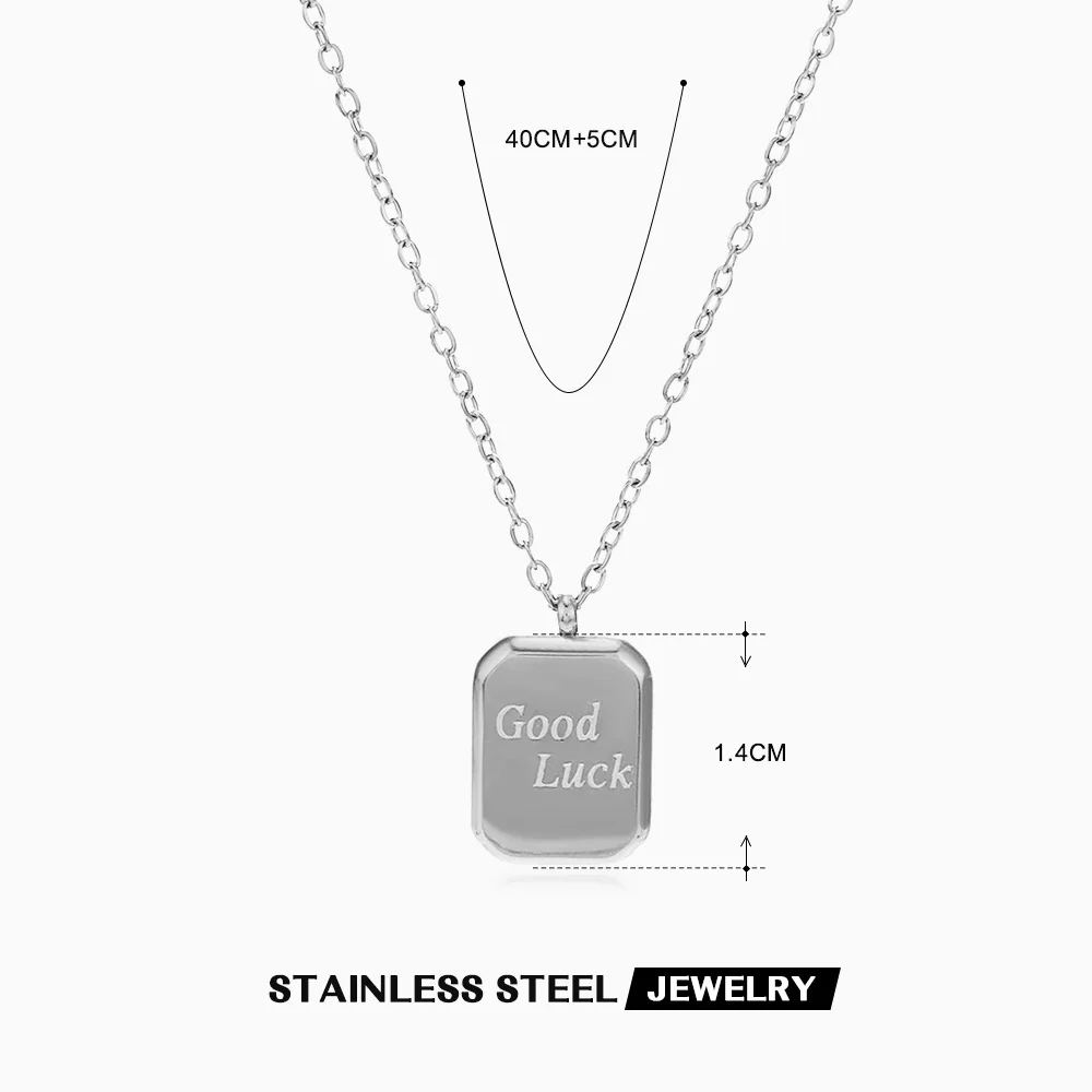 Hot Selling Jewelry Manufacturer Rectangle Engraved Letter Good Luck Necklace Stainless Steel Jewelry Square Necklace for Women