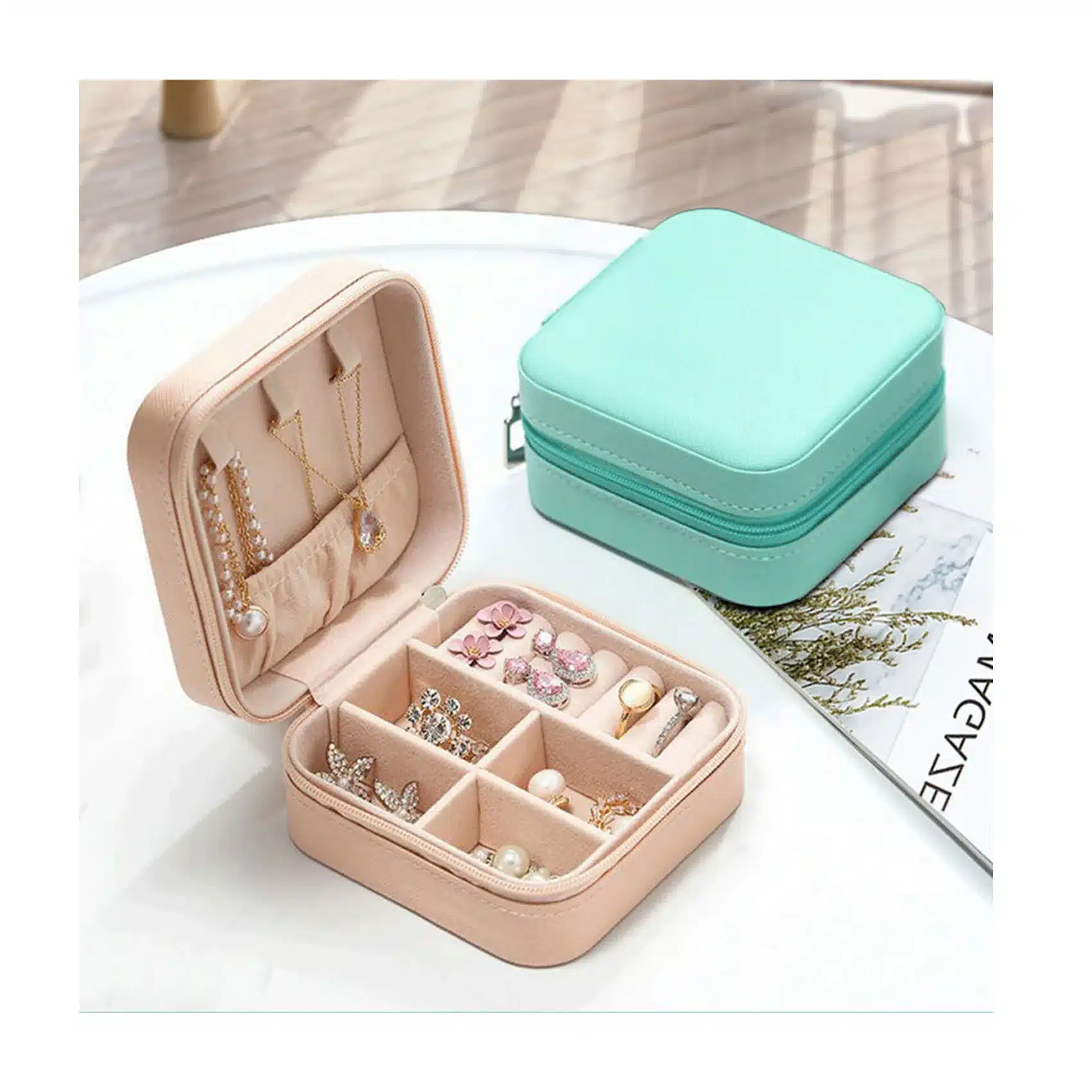 Hot Sale Blank Velvet Jewelry Storage Case Women Velvet Small 10*10*5cm Square Zipper Travel Jewelry Boxes
